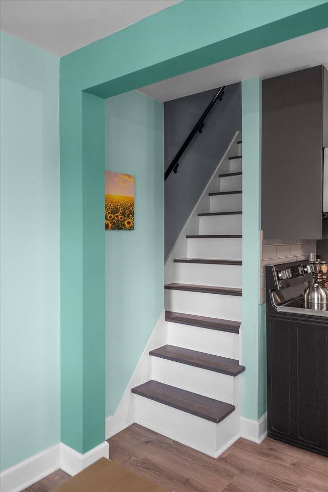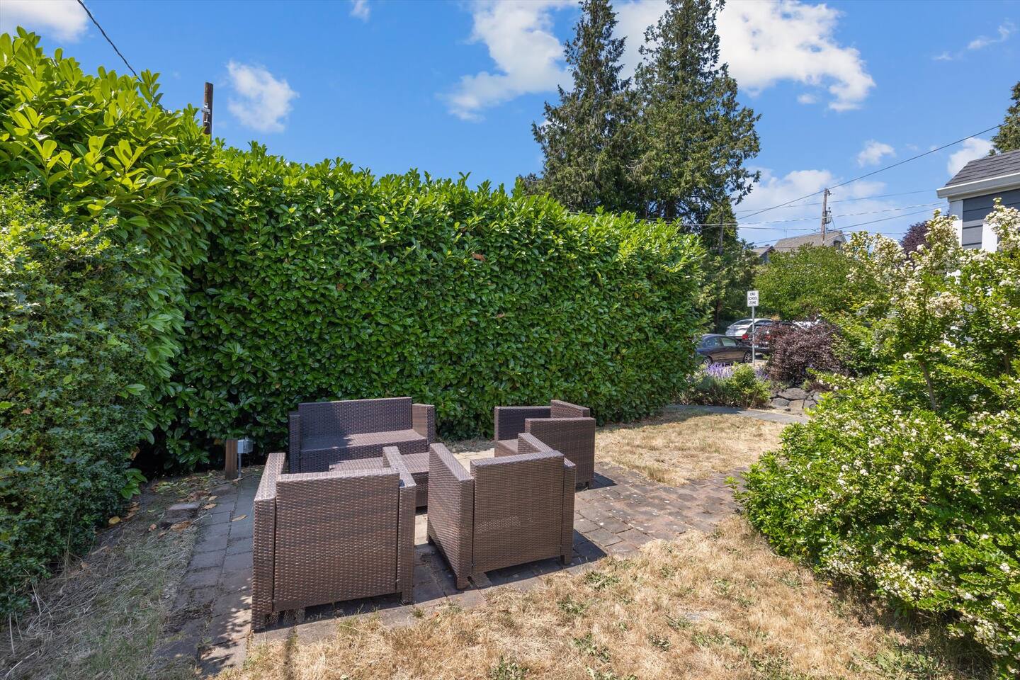 Our home is perfect for families, friends, or business travelers seeking a peaceful and stylish retreat. Take in the peek-a-boo views of Mt. Rainier and the Space Needle while you stay cool in air conditioning during those warm summer days. The abundance of natural light creates a warm and inviting atmosphere. Enjoy Seattle's glorious seasons! Fall paints the city in stunning hues, making our home a cozy retreat after exploring nearby parks. As the weather cools, our location is perfect for visiting students during the UW Fall Quarter (classes end December 5th), and we are also close to the city's top conference venues and festive holiday markets in November and December. We have two full-size beds, one queen-size bed, and the bathroom offers a rejuvenating shower experience. Our well-equipped kitchen is ready for culinary adventures, complete with all the essentials you need to prepare delicious meals. Take advantage of the well-equipped kitchen to prepare picnic lunches for sunny days at nearby parks. For entertainment, we provide a Roku soundbar with a Netflix subscription. For some quality time together, we offer a selection of board games, puzzles, and books to keep you entertained throughout your stay. No need to worry about laundry, as we offer a washer and dryer for your convenience. After a day of exploring, relax on the comfortable patio furniture and soak in the peaceful Wallingford atmosphere. Work-Friendly Space: For our business travelers or remote workers, we have set up a dedicated work-friendly space in one of the upstairs bedrooms. The desk comes with a keyboard, mouse, monitor (HDMI connection), and an ergonomic office chair, allowing you to be productive and comfortable during your stay. Ultra high-speed Wi-Fi ensures seamless connectivity, perfect for both work and streaming entertainment after a productive day. While we consider our home to be suitable for children and families, please be aware that it is not child-proofed. Kindly ensure that children are supervised at all times. We do provide a pack and play, retractable gate on the main floor, and movable gate. We would love to be a part of your Seattle experience! Secure your dates now to experience the city's vibrant energy and stunning natural beauty. Don't miss out on creating unforgettable memories in our Wallingford home!