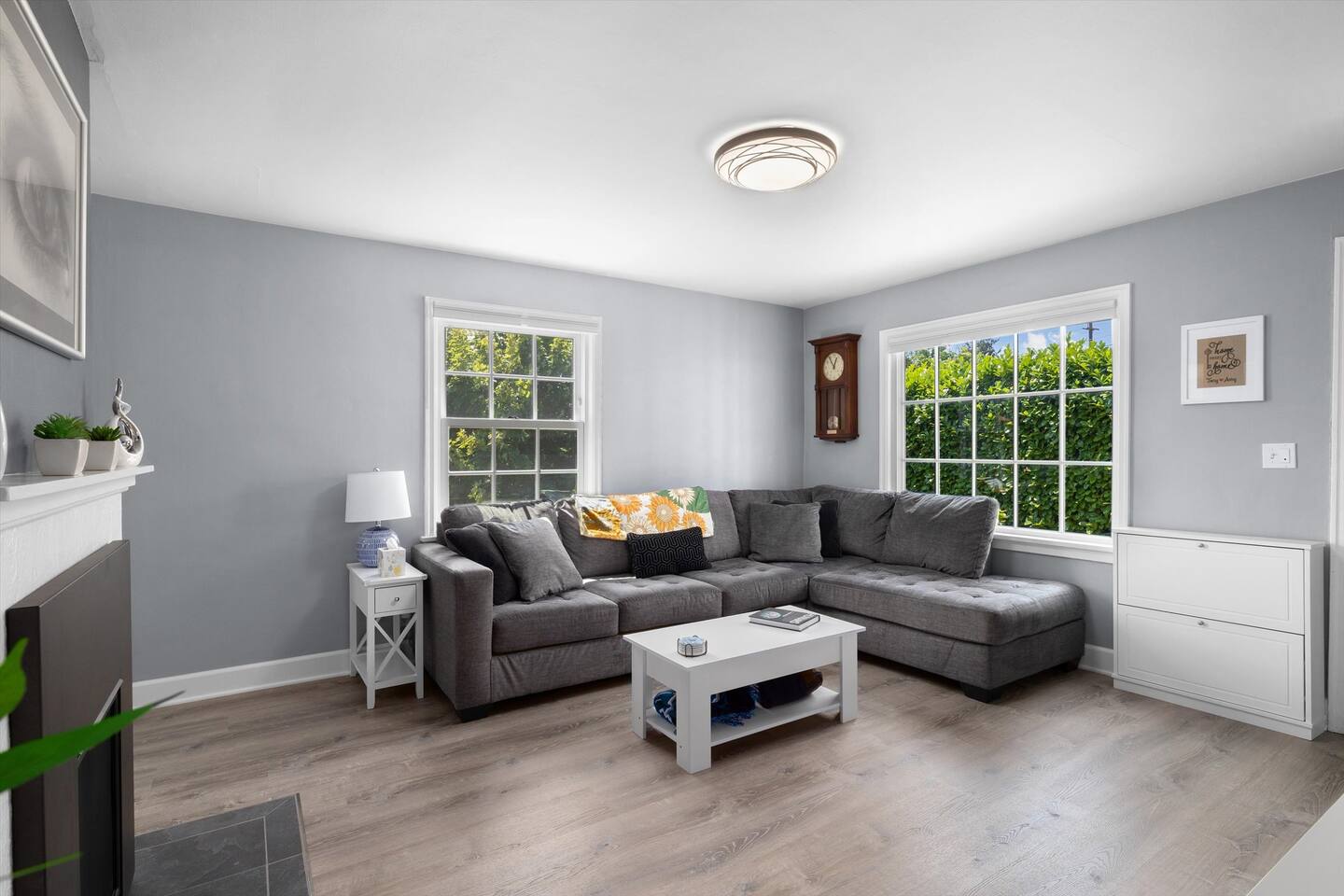 ✨ Early Check-In & Late Check-Out ✨ Want to make the most of your stay? Early check-in and late check-out are available (subject to availability) for a small additional fee, as they require special coordination with our cleaning team. Simply request the upgrade, and we’ll send you a quick link to our Guest Portal where you can secure extra time to relax and enjoy your visit. For stays longer than 10 days, we require a mid-stay home cleaning for an additional $150. For stays longer than 20 days, we will require two mid-stay home cleanings for $150/each. A couple of considerations: 1. Steep Stairs: Accessing the two bedrooms on the second floor requires climbing steep stairs, which may be challenging for small children or guests with mobility issues. 2. Outdoor Noise: Our outdoor space, while providing a wonderful place to relax, may experience some highway and occasional plane noise. We have taken measures to minimize the impact inside, but light sleepers or guests sensitive to noise may want to consider this aspect when booking with us. Ear plugs are provided in the downstairs bathroom. 3. Fireplace is for decoration only. 4. During the spring and summer months, we have weekly mowing services. 5. We will rely on your help making sure the trash and recycling bins are out at the street for pickup on Fridays. We’ll send a quick reminder Thursday evening—your help in keeping us on track is truly appreciated! **House Rules** • Absolutely NO parties or events (resulting in a $500 fine), adhere to quiet hours between 10pm-8am, refrain from smoking or vaping anywhere on the premises, including outdoor spaces, refrain from engaging in digital piracy, and kindly remove shoes before entering the home. • NO pets allowed. Failure to adhere to our pet free space will result in a $500 fine.