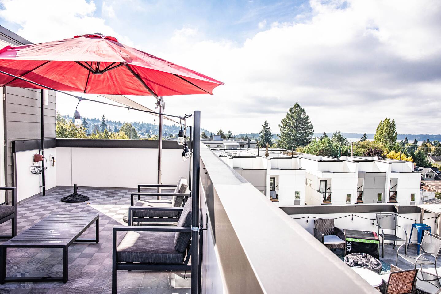 Dog-friendly, stylish retreat with parking — perfect for families and friends! This spacious 3-bedroom, 4-story townhome comfortably sleeps up to 6-8 guests. Relax on the beautiful rooftop terrace, where you can take in stunning views of the ferry and Vashon Island. Our home is perfectly situated for exploring the best of West Seattle. Enjoy easy access to Lincoln Park, Alki Beach, the Vashon Ferry terminal, and the lively shops and restaurants of Alaska Junction — all within a short walk!