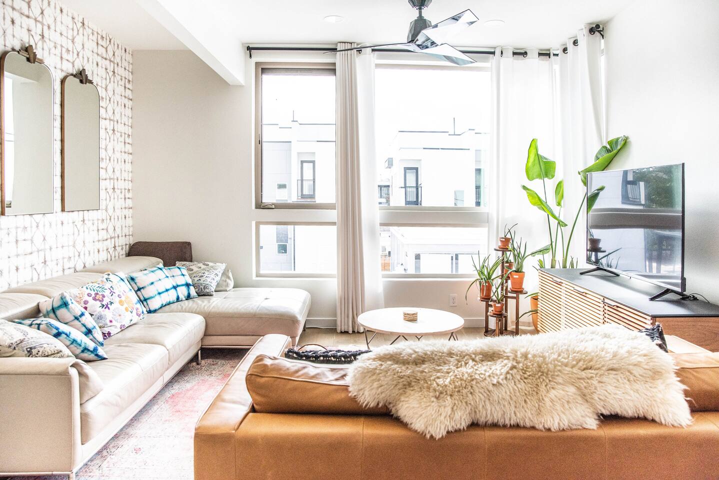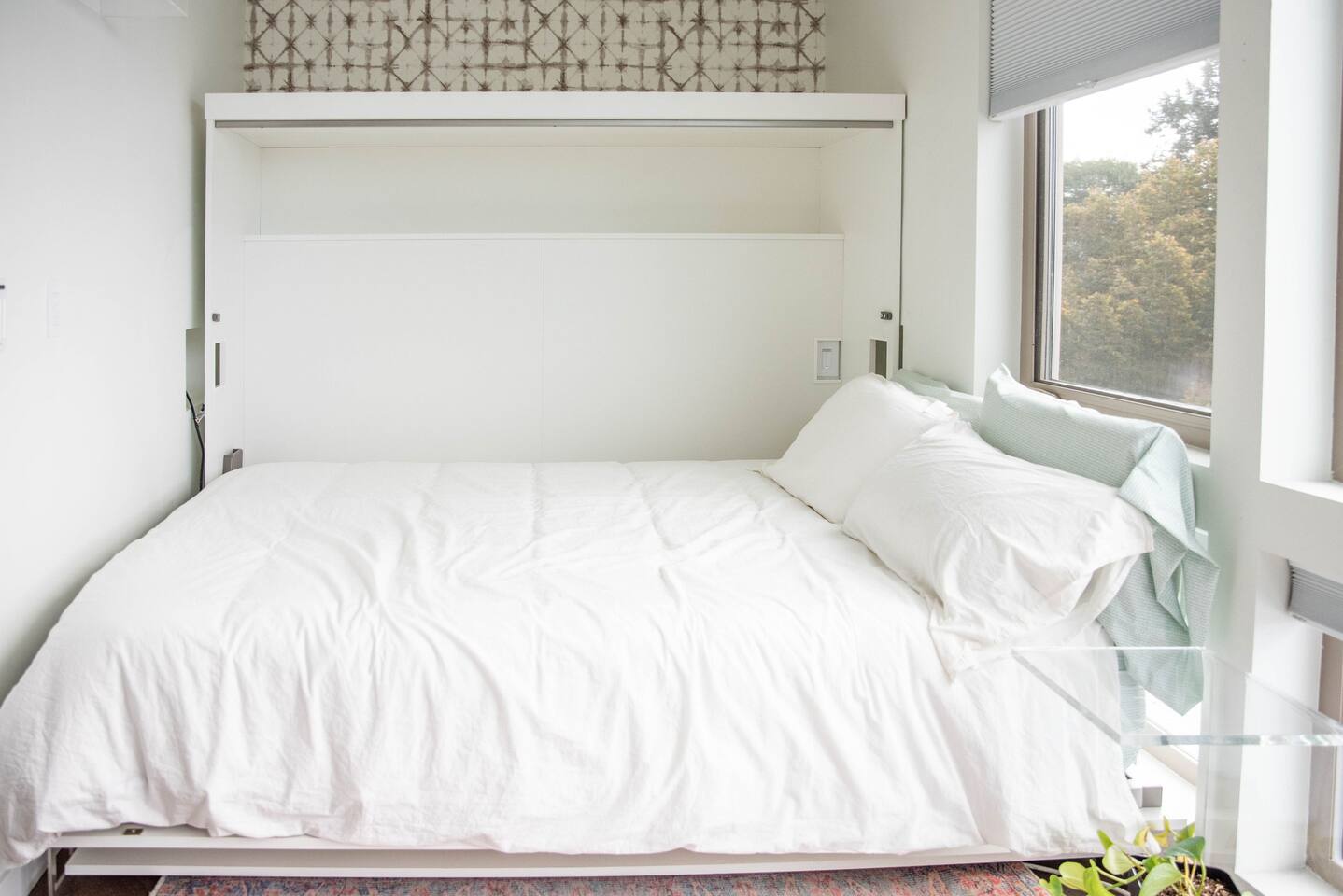 You'll find comfortable queen beds in each bedroom, along with an additional sofa bed for extra sleeping options. We've thoughtfully provided pillows of various softness levels to ensure your ultimate comfort, and the beds are dressed with high-quality cotton sheets for a restful night's sleep. There is one portable AC unit in the main bedroom. Please note: This is a 4-story townhome with several flights of stairs. If you have mobility concerns, our home may not be the best fit, as there are no showers located on the first floor.