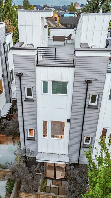 Two bedroom, two bathroom townhome. Bedrooms are on the first and third floors. ⭐ WHY THIS IS A GREAT SPOT Quiet location in Capitol Hill, steps from restaurants, coffee shops, and nightlife Coveted dedicated parking spot just 15 seconds from your front door Easy transit: RapidRide to downtown in 15 minutes, Light Rail <20-minute walk, and almost zero wait times for rideshares Each bedroom has a luggage rack and full size closet, and they are each next to a bathroom with a shower Fully stocked kitchen with high-end Italian cooking range and full cookware Complimentary coffee & tea station with automatic coffee machine, plus everything you need to make a high-quality pourover with your own beans Private terrace with views of the downtown Seattle skyline Alcove desk and office chair for working in seclusion Curated hand-written list of local off-the-radar recommendations within a 15-minute walk Full Description: Welcome to your home away from home nestled in a quiet area of Capitol Hill. You'll be steps away from enjoying the restaurants, coffee shops, and energy of one of Seattle's iconic neighborhoods. All ways of getting around are perfect from our location. You'll have a coveted dedicated parking spot 15 seconds from your front door but also access to the newly built RapidRide (arrive downtown Seattle in 15 minutes door to door) and the Light Rail station (less than a 20-minute walk) as excellent public transit options. Even ride shares benefit with an average wait time of 1–3 minutes. You’ll have a fully stocked kitchen and modern amenities including Wi-Fi access. Complimentary coffee/tea station with an automatic coffee machine, and you'll have everything you need to make a pourover if you buy some local beans. Full high-end Italian cooking range with full cookware. There is an alcove desk and office chair downstairs if you need to work in seclusion. The main level overlooks a well-maintained courtyard, and the private terrace offers views of the downtown Seattle skyline. If you’d like to add some spontaneity to your travel plans, look on the second floor for the hand-written list of places that are mostly off the radar, curated recommendations within a 15-minute walk.