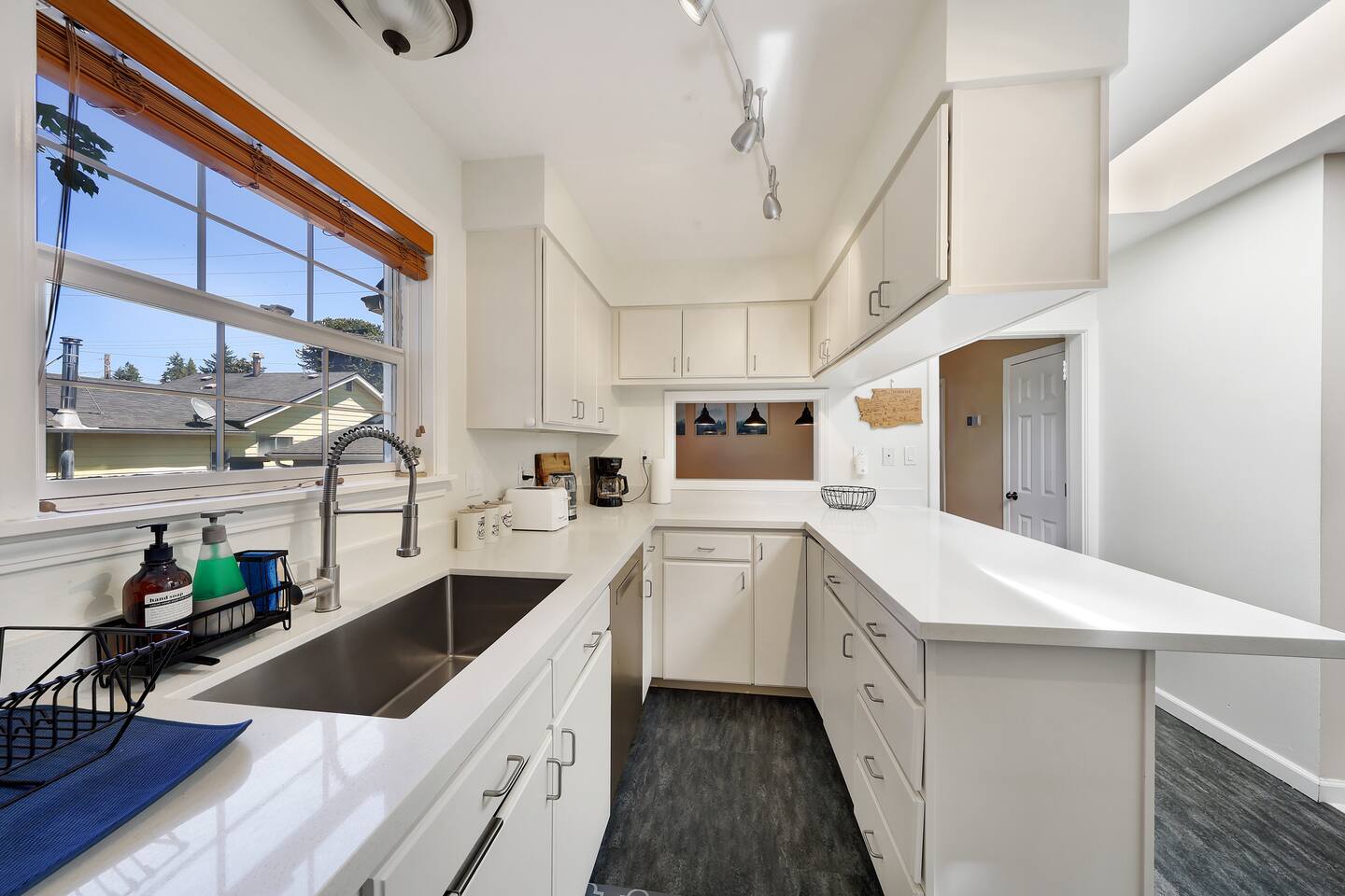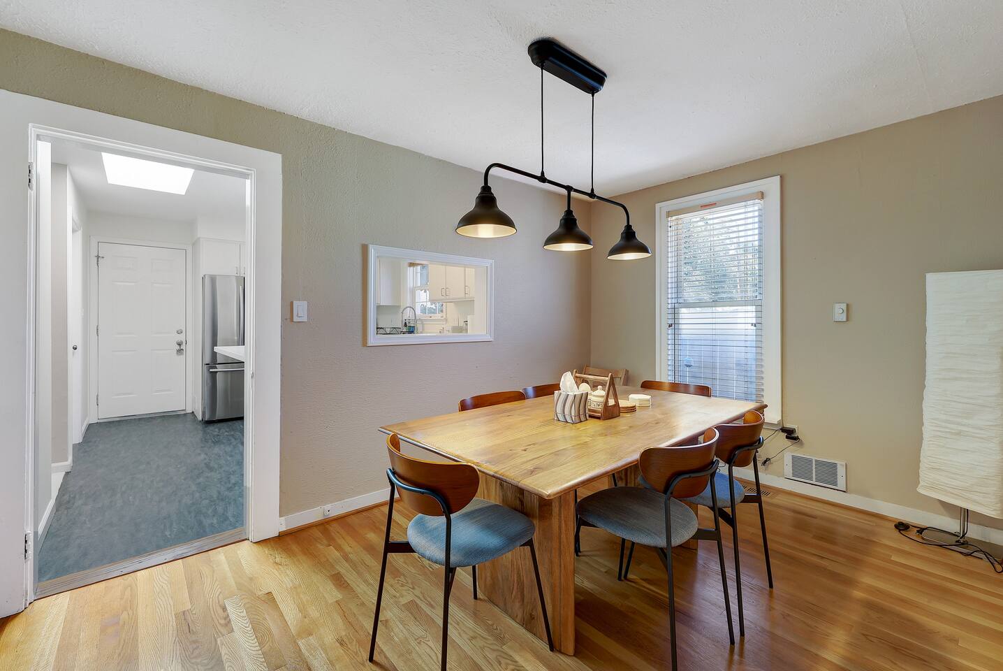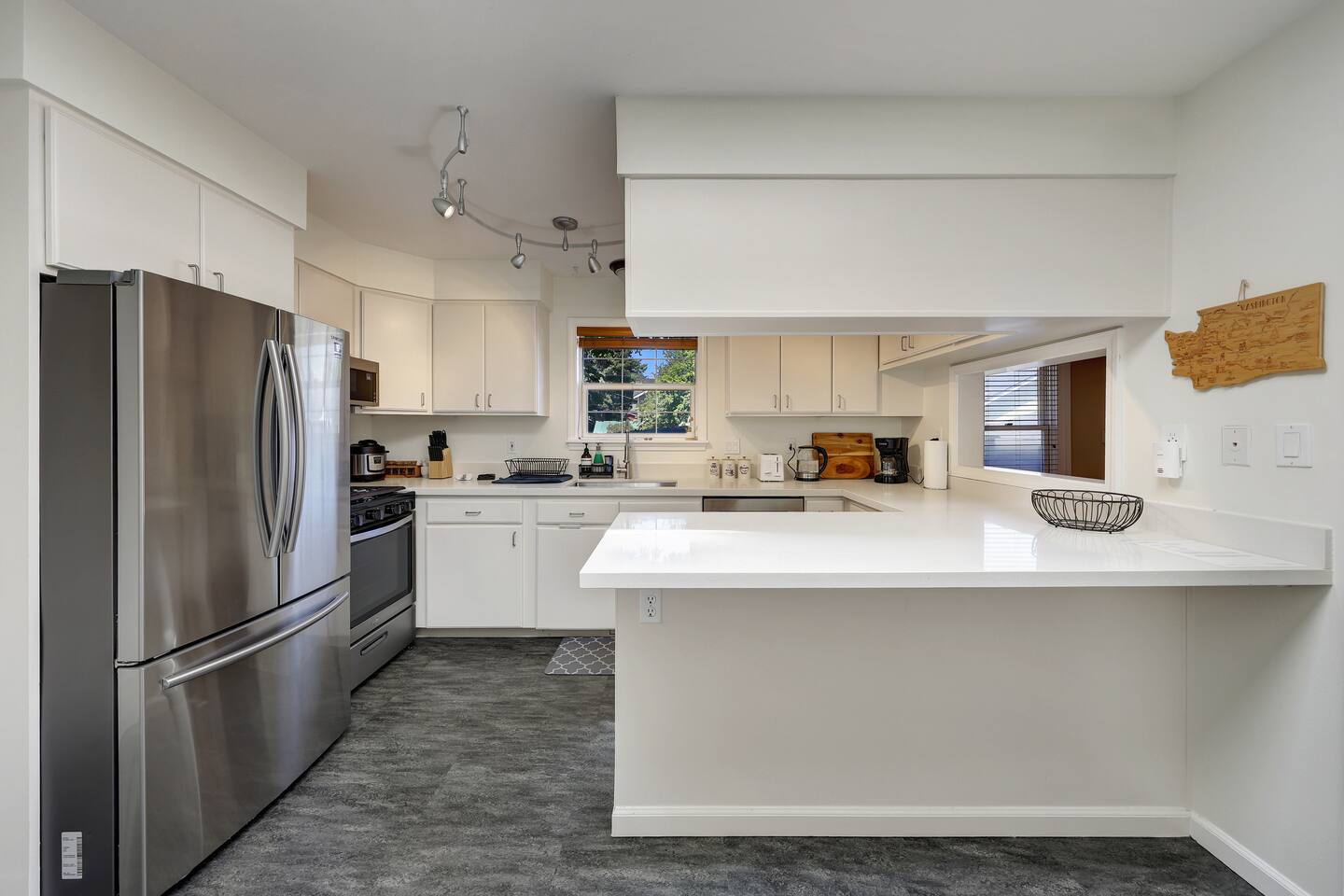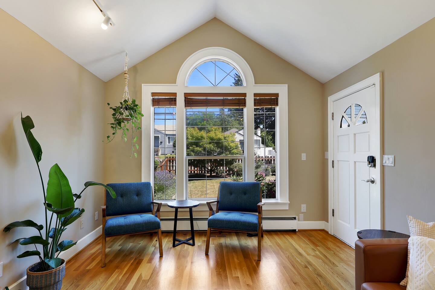Modern 3BR/3BA Maple Leaf retreat with vaulted ceilings, skylights, and hardwood floors. Features a fully updated kitchen with brand-new stainless steel appliances and gas range. All bedrooms, including a spacious master suite, are on the same level. Enjoy a private fenced backyard with deck and storage shed. Quick access to I-5 Express, Northgate Light Rail, UW, downtown, and the new Seattle NHL arena—perfect for exploring the city or relaxing in comfort.