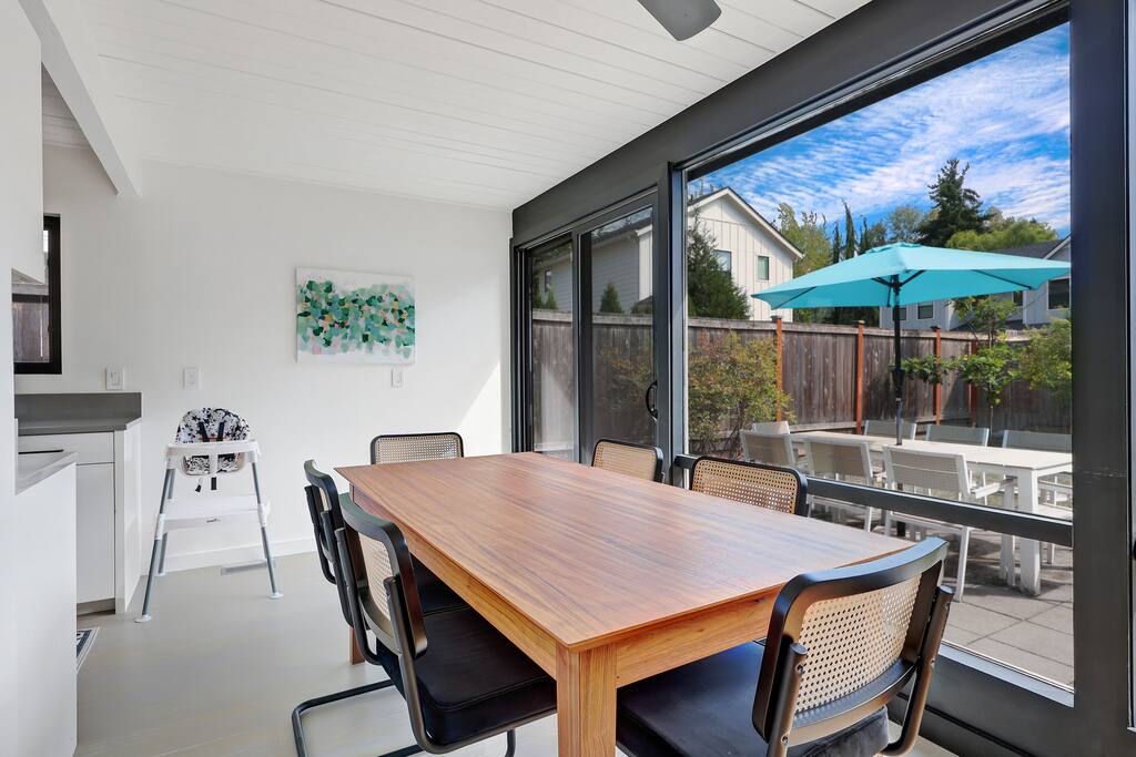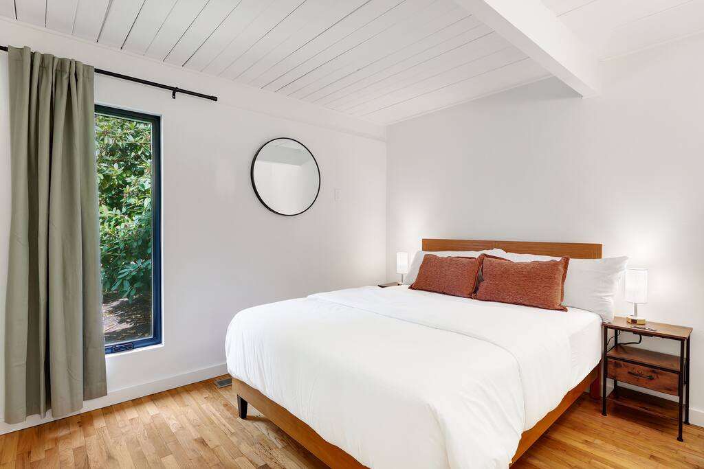 Relax in this stylish 4BR/2.5BA Mid-Century Modern home in peaceful Meadowbrook. Perfect for families, with a ping pong table, kid-friendly amenities, and open indoor-outdoor living. Enjoy floor-to-ceiling windows, a chef’s kitchen, private patios, and a serene primary suite. Fast Wi-Fi, driveway parking, central air conditioning + heat, and in-unit laundry included. Close to parks, Meadowbrook Pond, Northgate, and U-Village. A calm, family-friendly Seattle retreat awaits!