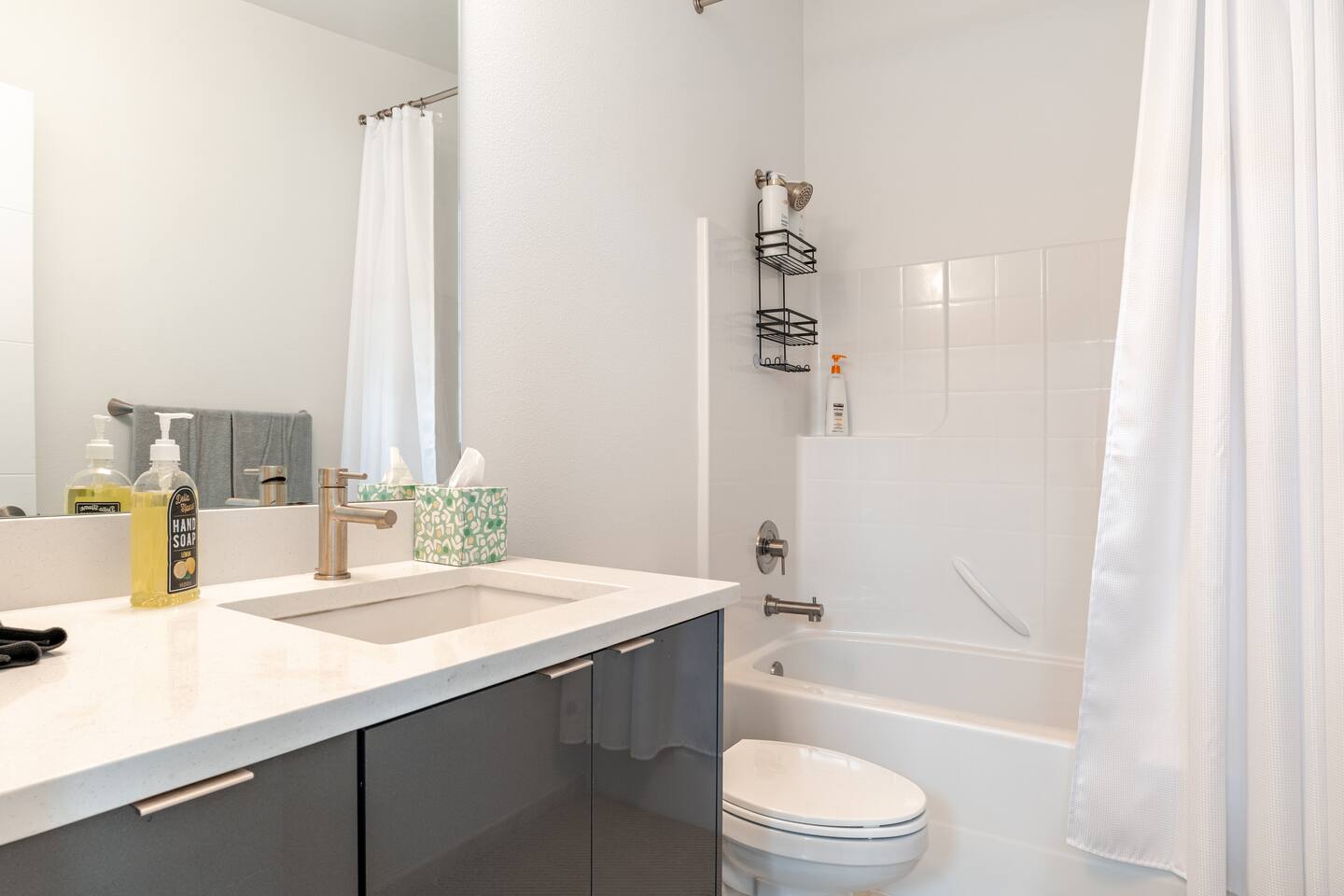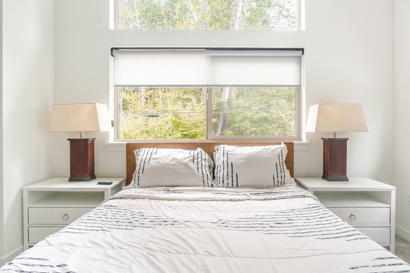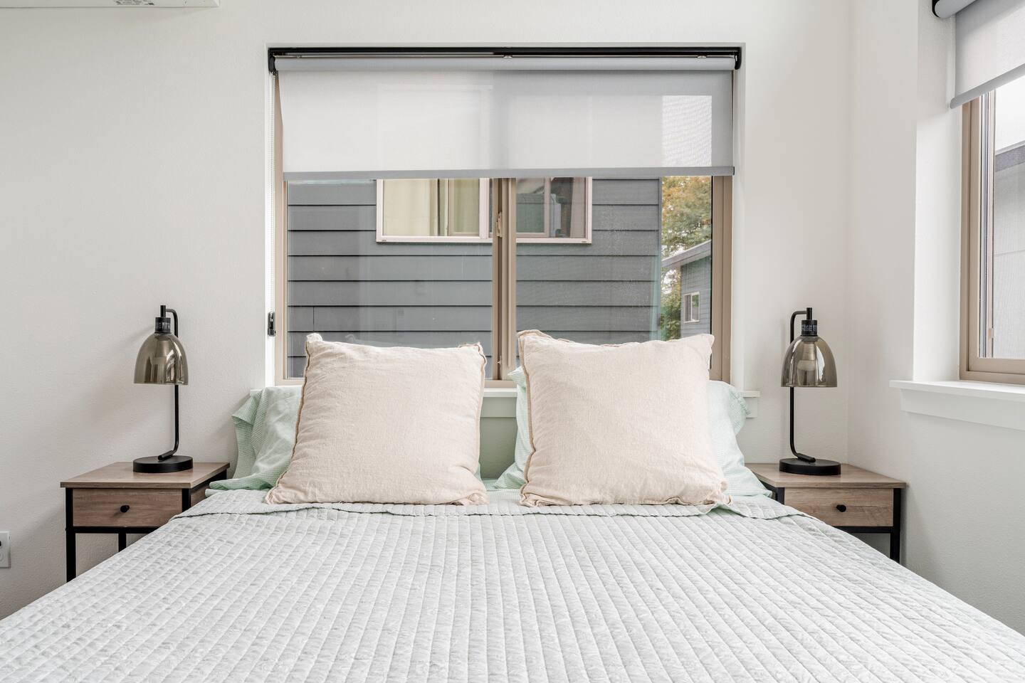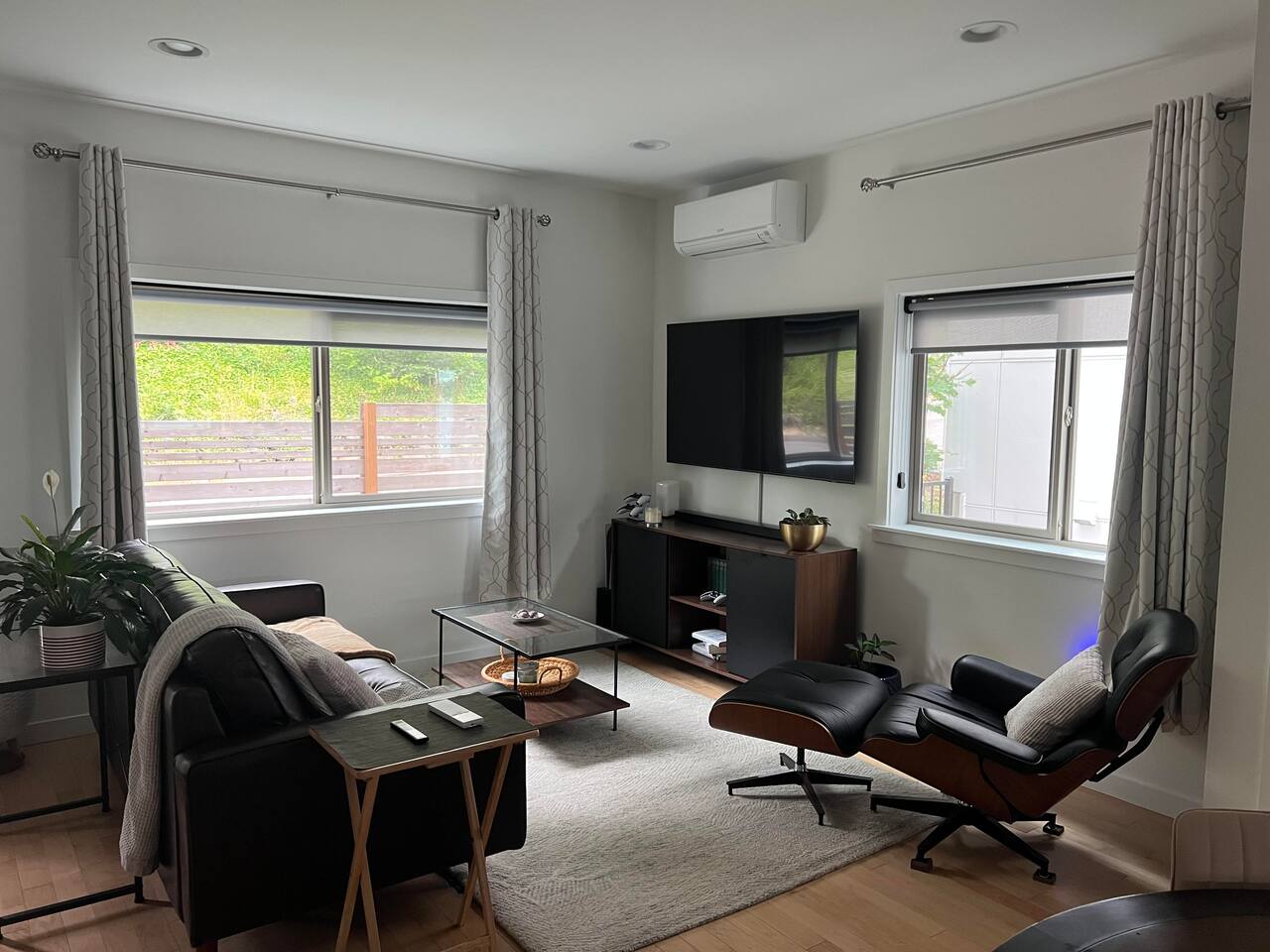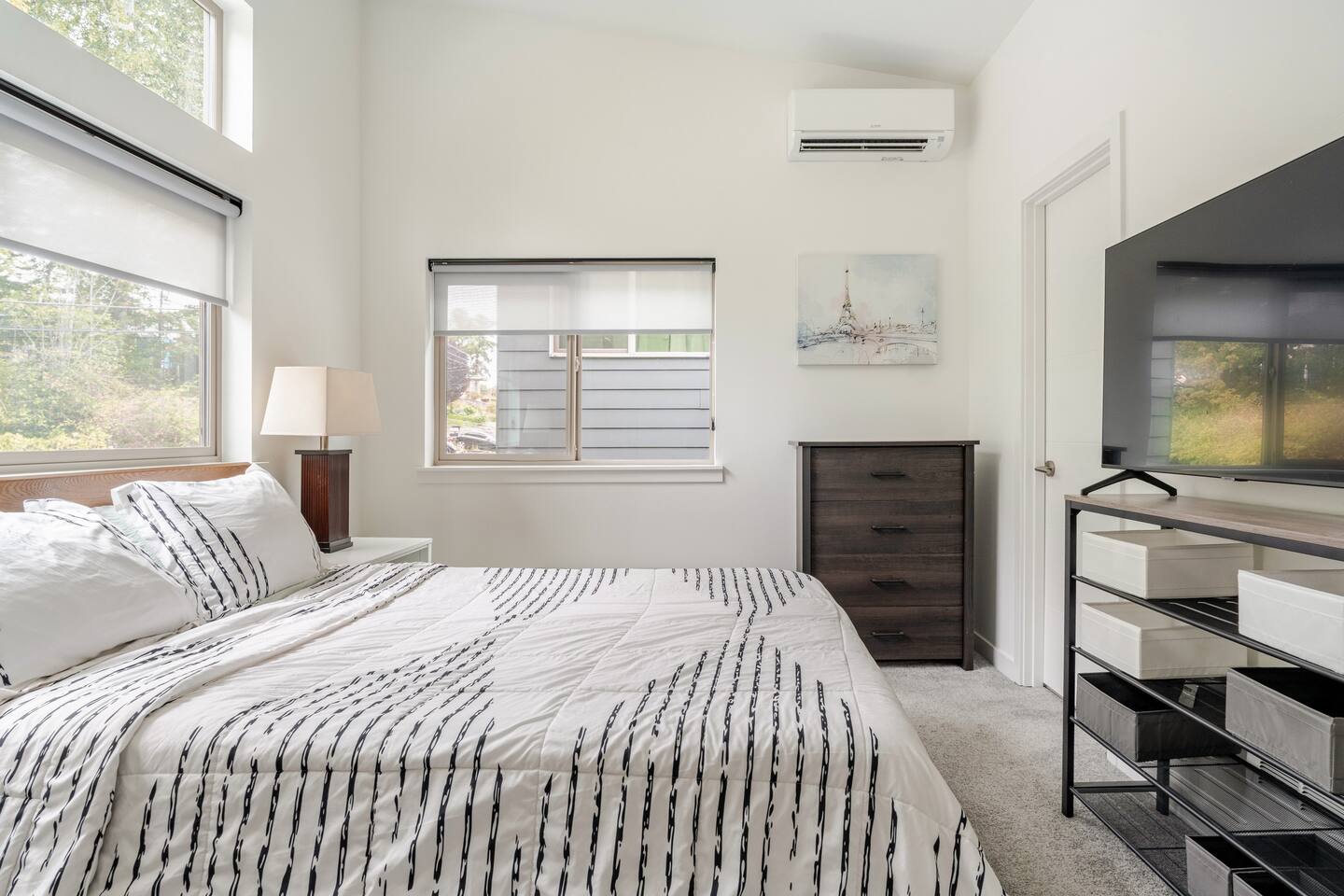 Home Layout: • Main floor: Living room, kitchen, and half bath • Lower floor: Guest bedroom and bathroom • Upper floor: Primary bedroom w/ ensuite bathroom, and guest bedroom and bathroom. Home Highlights • Bright and spacious layout, perfect for group stays with separate levels for bedrooms and baths • Heat and air conditioning to ensure year-round comfort • Large windows offering lots of natural light and scenic neighborhood views • Fully equipped kitchen with high-end appliances, cookware, silverware, coffee & tea • Smart TVs in the living room and bedrooms • In-unit washer and dryer for added convenience Key Distances: • SeaTac Airport: ~6 miles — ~10 min drive, or 15 min via Light Rail from Othello Station • Volunteer Park: ~30 min drive, 15 min via Light Rail from Othello Station • Downtown Seattle (Westlake): ~20 min drive, 30 min via Light Rail from Othello Station • Amazon HQ (Denny Triangle): ~25 min drive, 35 min via Light Rail from Othello Station • Pike Place Market: ~20 min drive, 35 min via Light Rail from Othello Station • Bainbridge Ferry Terminal: ~25 min drive, 40 min via Light Rail from Othello Station • Seattle Center / Space Needle: ~25 min drive, 40 min via Light Rail from Othello Station