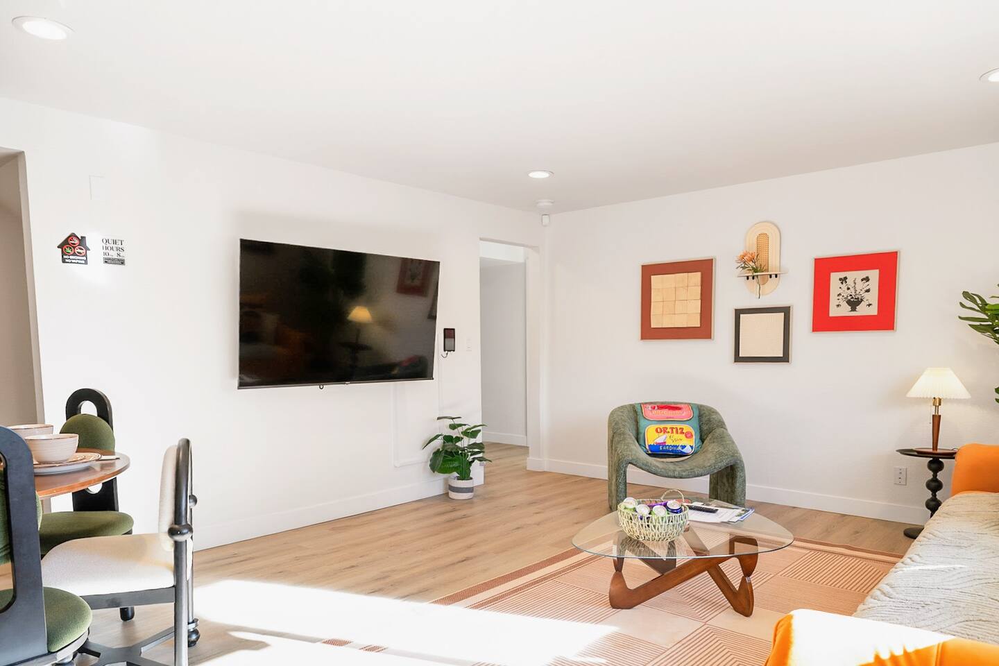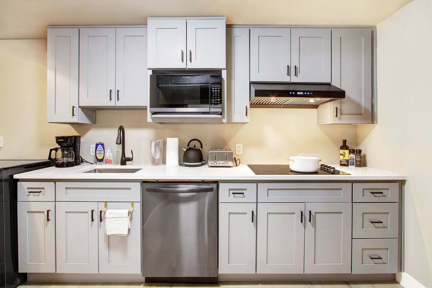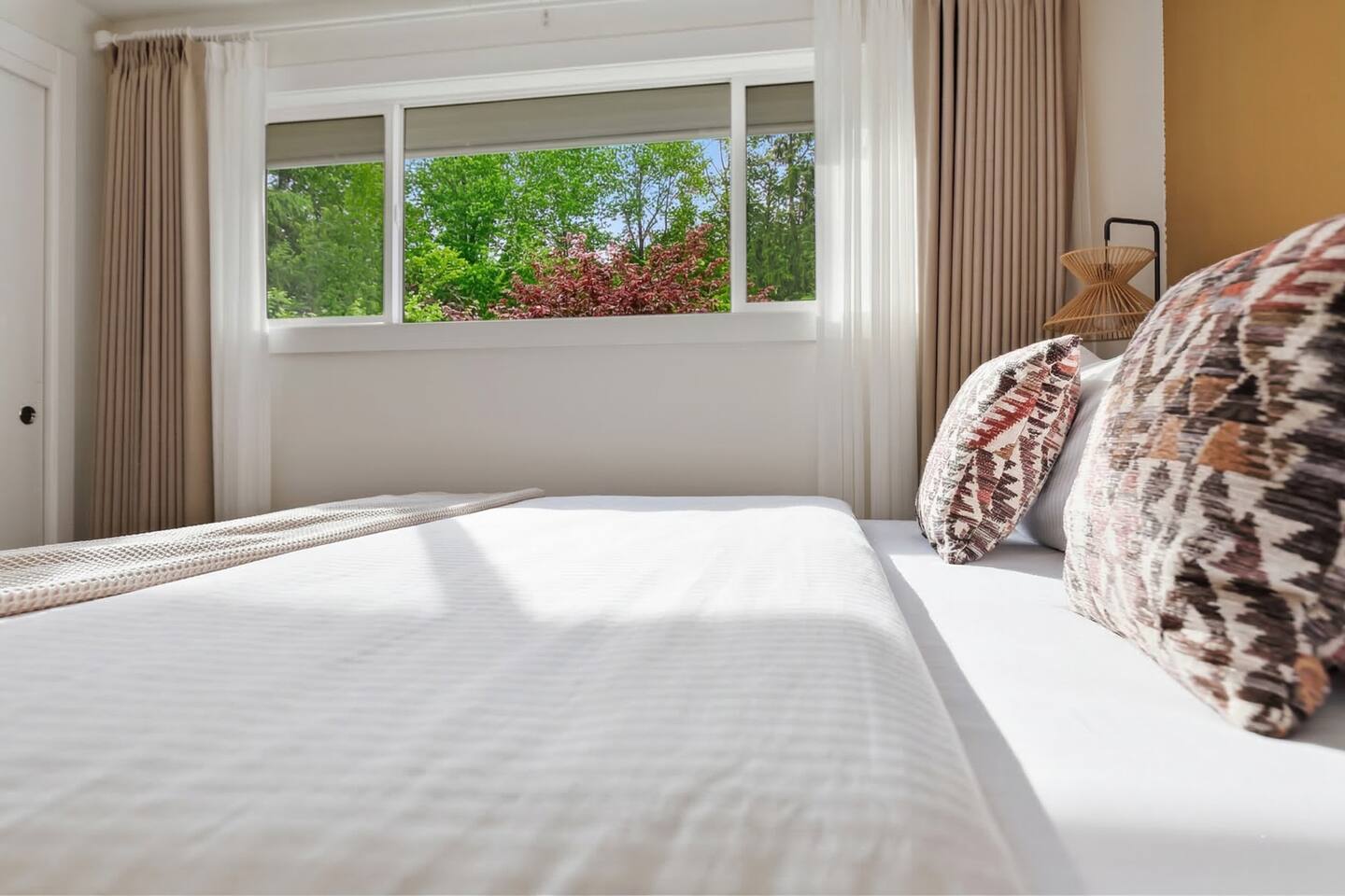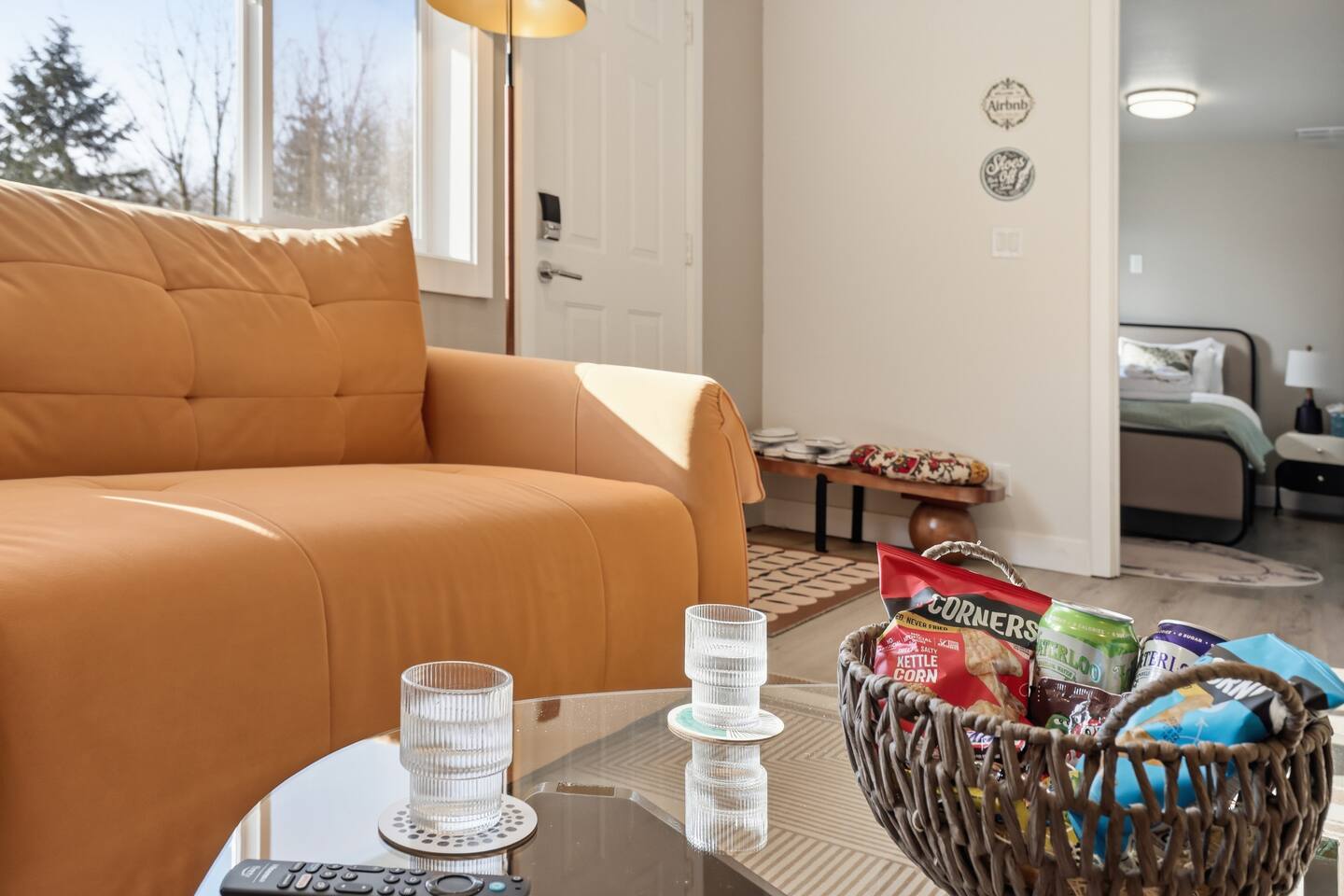 Home Layout: *Main Floor* - Living room with Smart TV - Dining room - Wrap around balcony with patio furniture - Kitchen with stainless steel appliances - Office nook - Garage with washer and dryer (no parking) - Primary bedroom with king bed - Two bedrooms with queen beds - Two full bathrooms *Lower Floor* - Chef's kitchen with stainless steel appliances - Dining table with seating for 6 - Living room with Smart TV - One bedroom with king bed - One bedroom with queen bed - One bedroom with two twin beds and a desk *Home Features* - Modern and chic design with comfortable furniture and high-end finishes. - Central AC and central heating. - Fresh linens and bedding for a comfortable sleep. - Driveway parking for four vehicles. - Fully-stocked kitchens with coffee maker, coffee, tea, hot chocolate, pots, pans, bowls, plates, glasses and utensils. - Smart TV with streaming apps pre-installed - just login! - High-speed WiFi (up to 1 Gbps) for all your working from home needs! - Two sets of washer and dryers, and laundry soap.