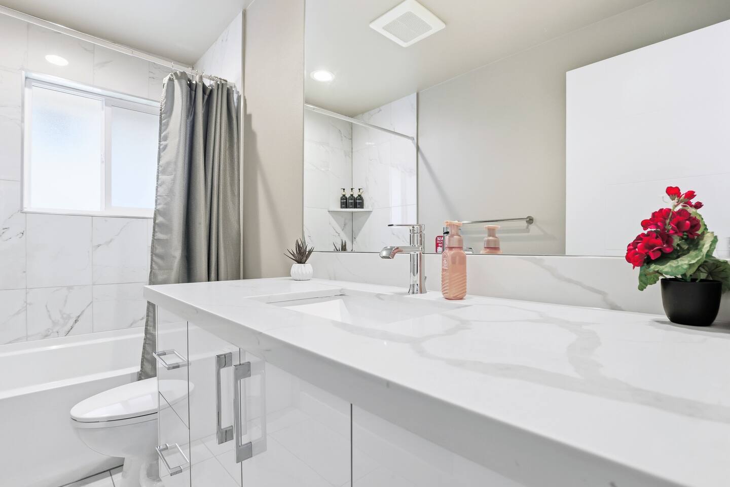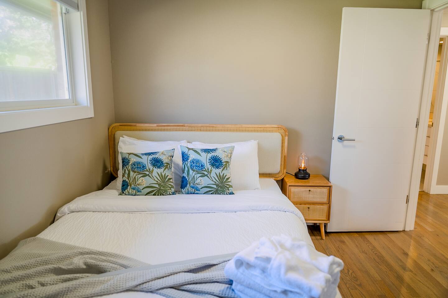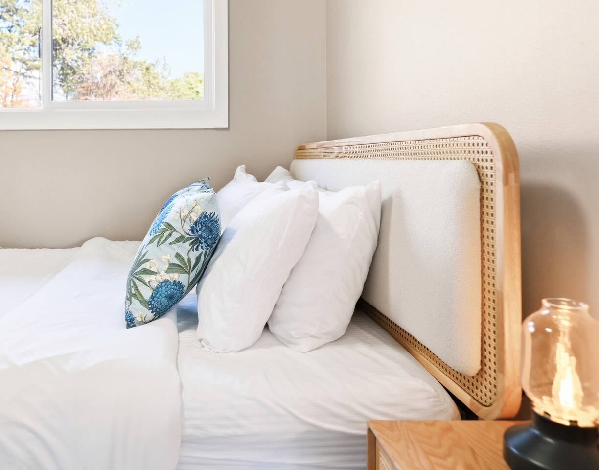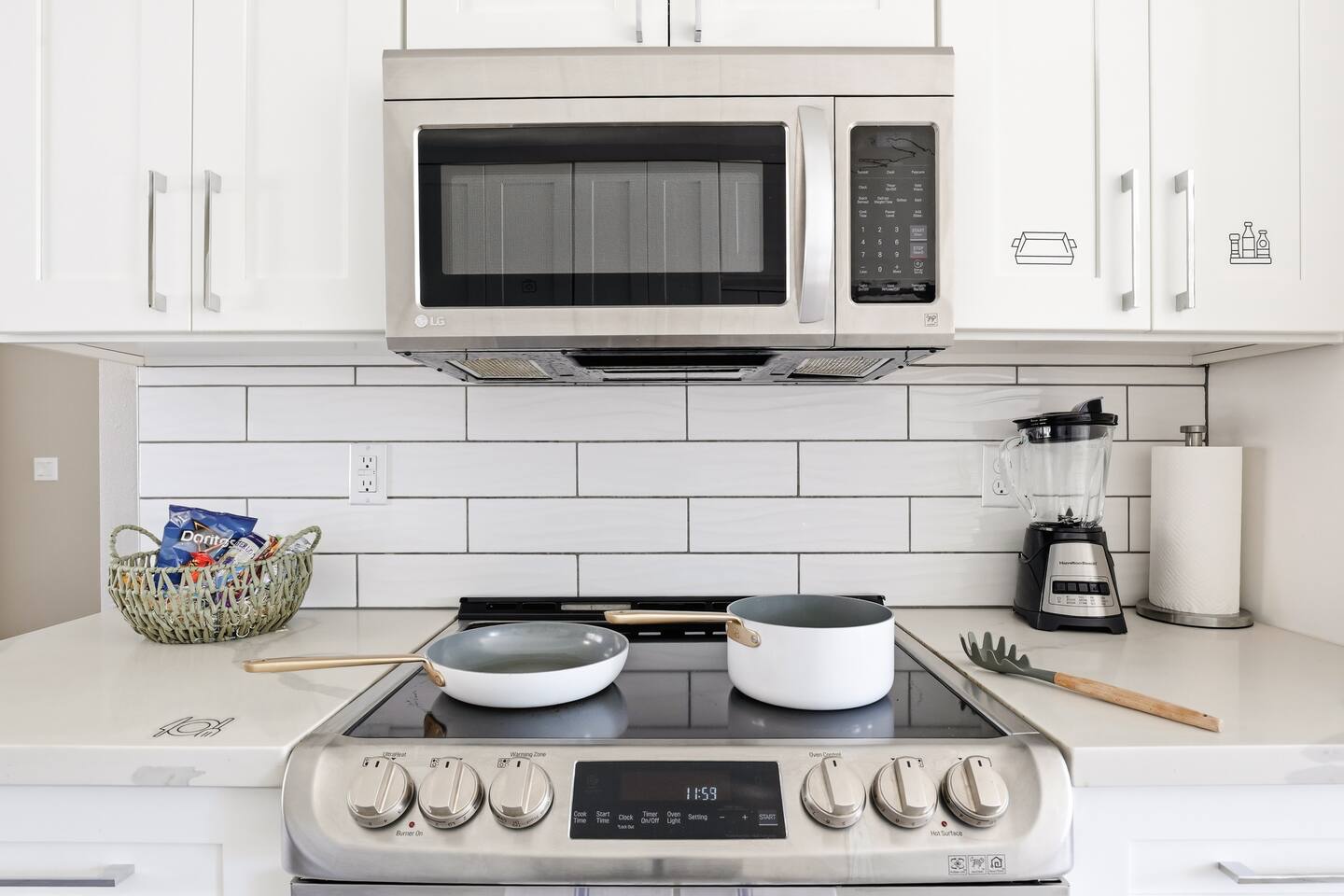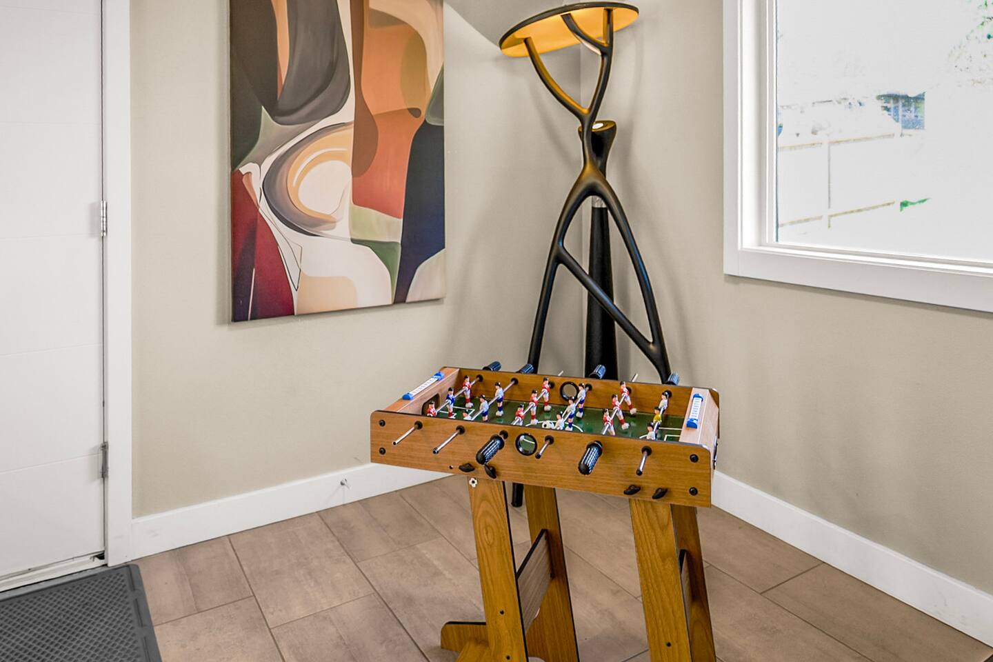 Home Layout: *Main Floor* - Living room with Smart TV - Dining room - Wrap around balcony with patio furniture - Kitchen with stainless steel appliances - Office nook - Garage with washer and dryer (no parking) - Primary bedroom with king bed - Two bedrooms with queen beds - Two full bathrooms *Lower Floor* - Chef's kitchen with stainless steel appliances - Dining table with seating for 6 - Living room with Smart TV - One bedroom with king bed - One bedroom with queen bed - One bedroom with two twin beds and a desk *Home Features* - Modern and chic design with comfortable furniture and high-end finishes. - Central AC and central heating. - Fresh linens and bedding for a comfortable sleep. - Driveway parking for four vehicles. - Fully-stocked kitchens with coffee maker, coffee, tea, hot chocolate, pots, pans, bowls, plates, glasses and utensils. - Smart TV with streaming apps pre-installed - just login! - High-speed WiFi (up to 1 Gbps) for all your working from home needs! - Two sets of washer and dryers, and laundry soap.