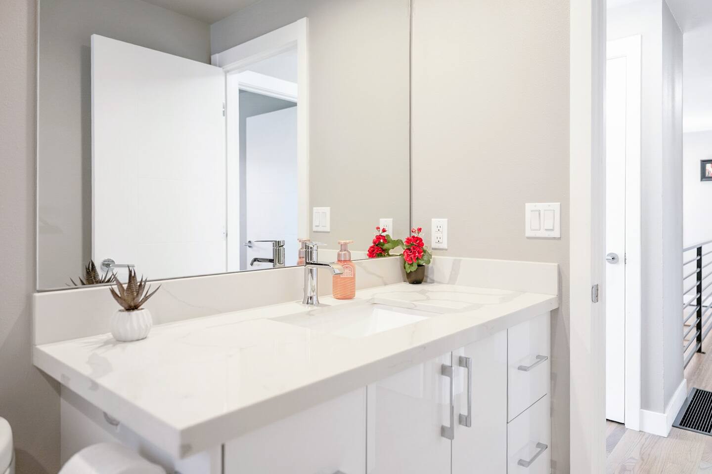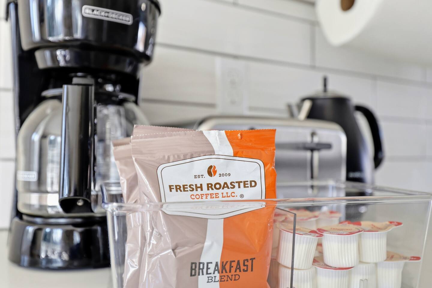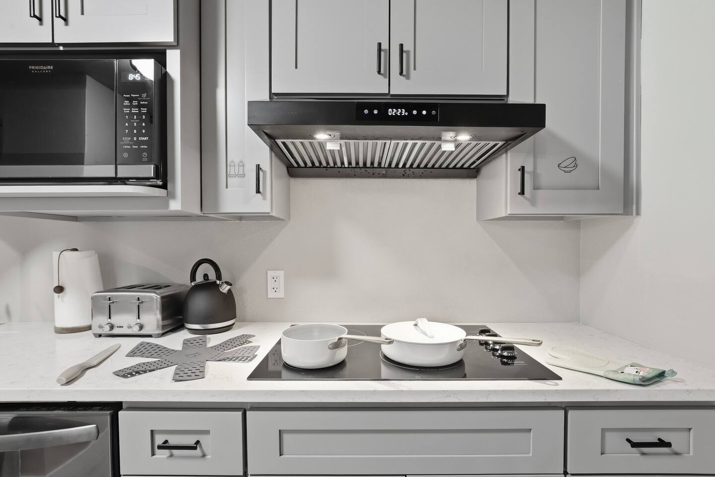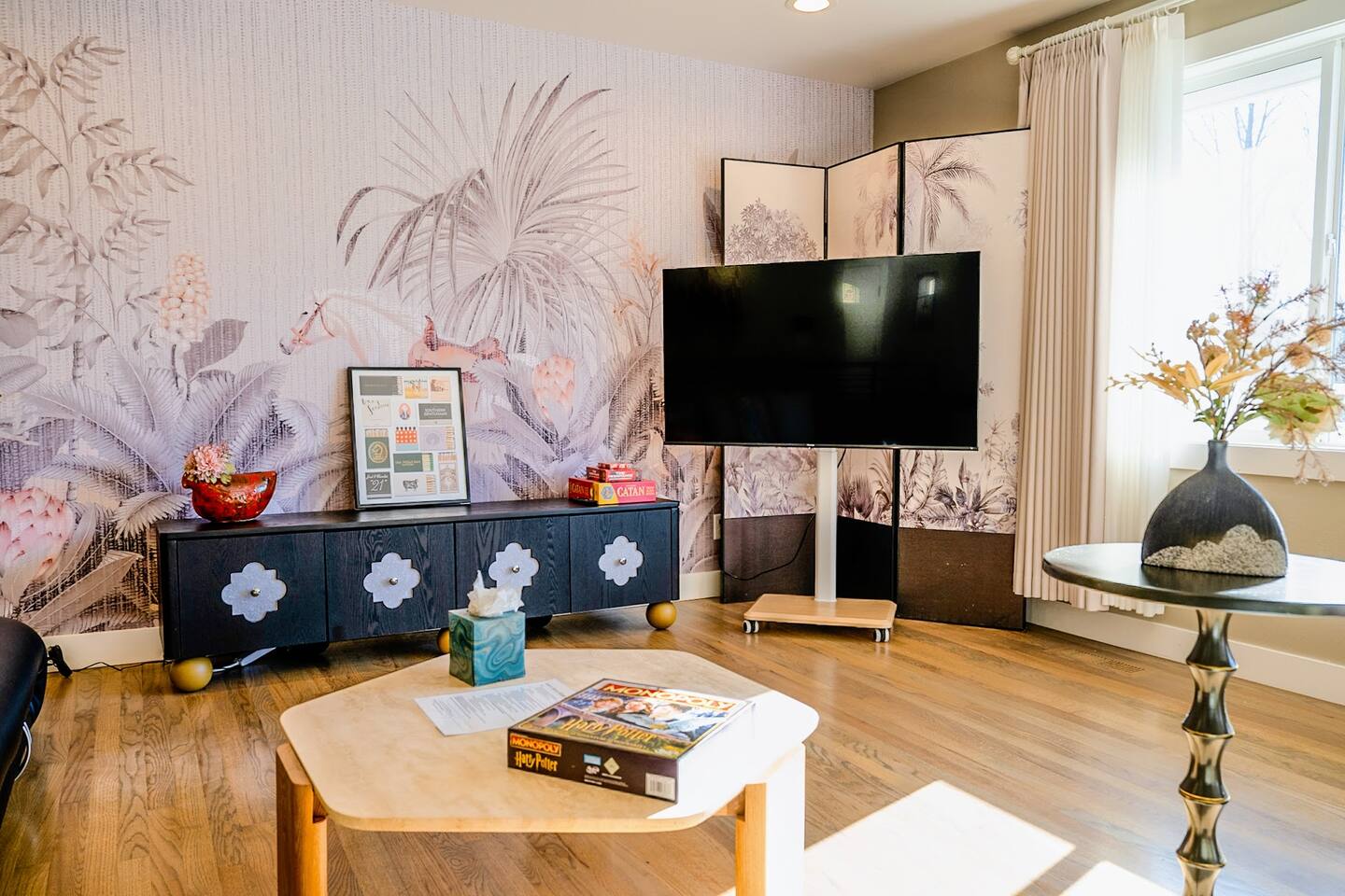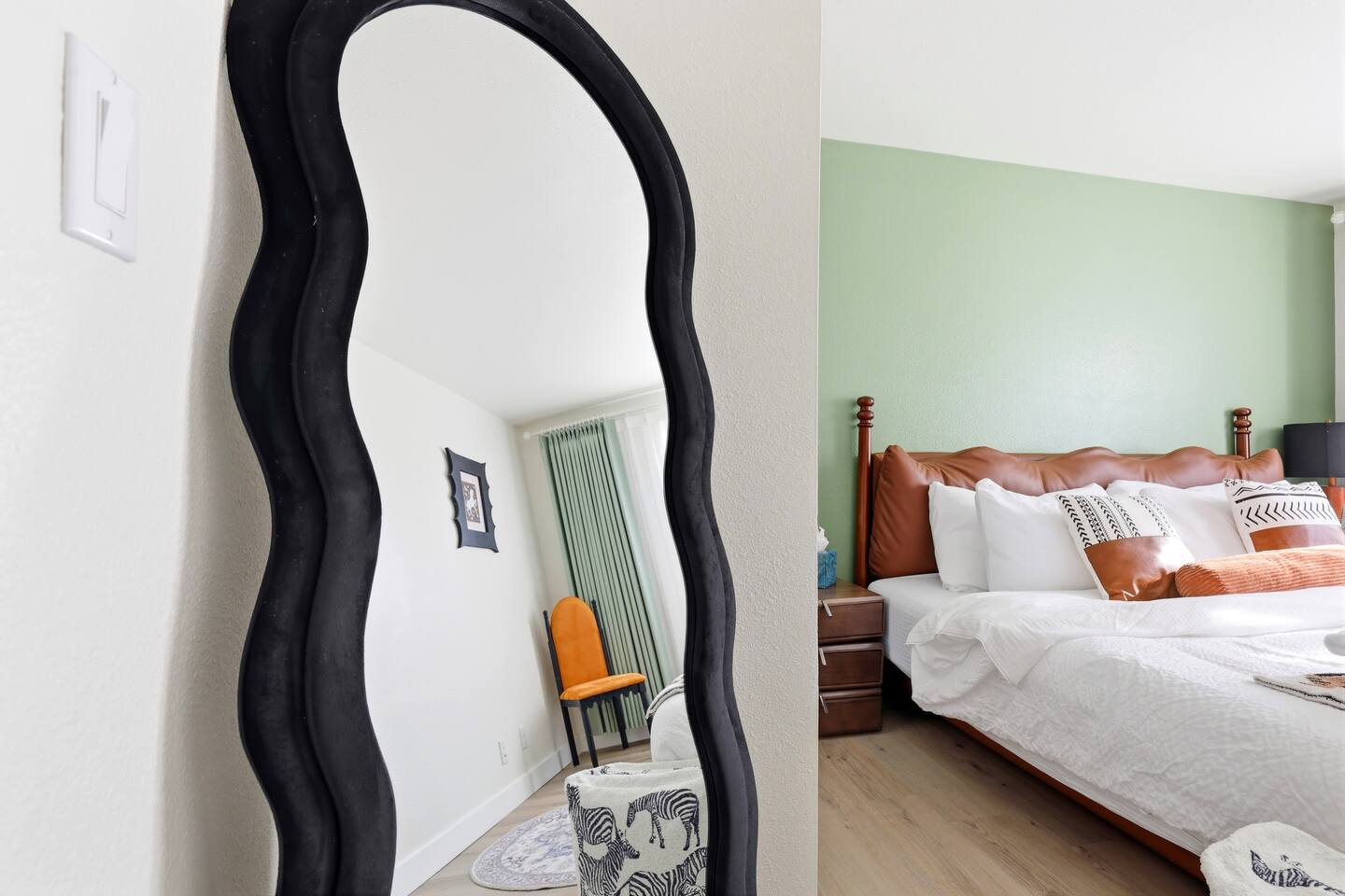 Home Layout: *Main Floor* - Living room with Smart TV - Dining room - Wrap around balcony with patio furniture - Kitchen with stainless steel appliances - Office nook - Garage with washer and dryer (no parking) - Primary bedroom with king bed - Two bedrooms with queen beds - Two full bathrooms *Lower Floor* - Chef's kitchen with stainless steel appliances - Dining table with seating for 6 - Living room with Smart TV - One bedroom with king bed - One bedroom with queen bed - One bedroom with two twin beds and a desk *Home Features* - Modern and chic design with comfortable furniture and high-end finishes. - Central AC and central heating. - Fresh linens and bedding for a comfortable sleep. - Driveway parking for four vehicles. - Fully-stocked kitchens with coffee maker, coffee, tea, hot chocolate, pots, pans, bowls, plates, glasses and utensils. - Smart TV with streaming apps pre-installed - just login! - High-speed WiFi (up to 1 Gbps) for all your working from home needs! - Two sets of washer and dryers, and laundry soap.