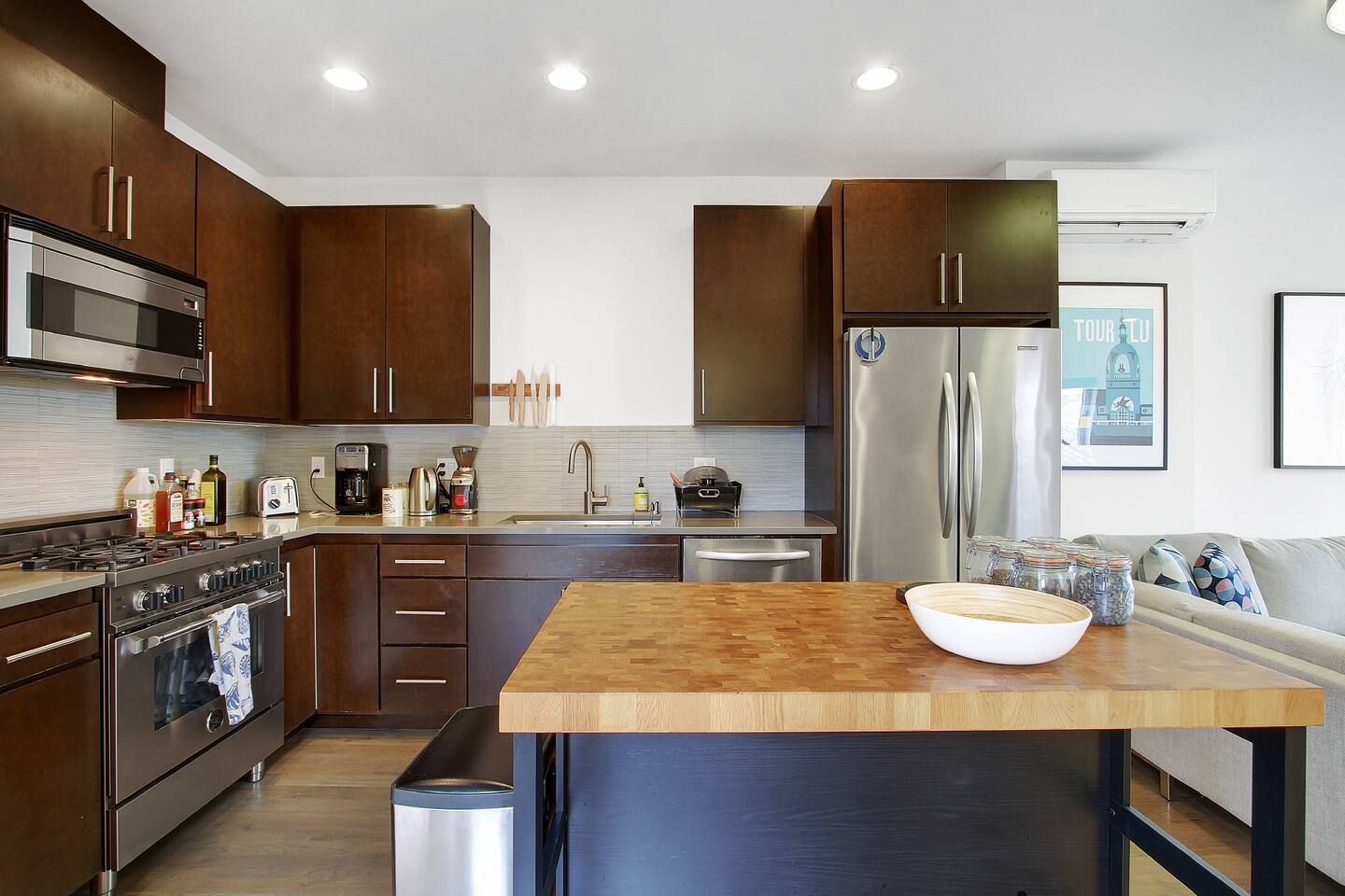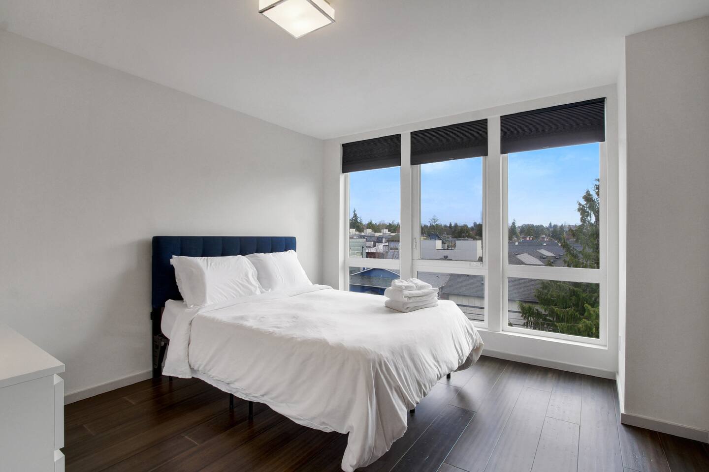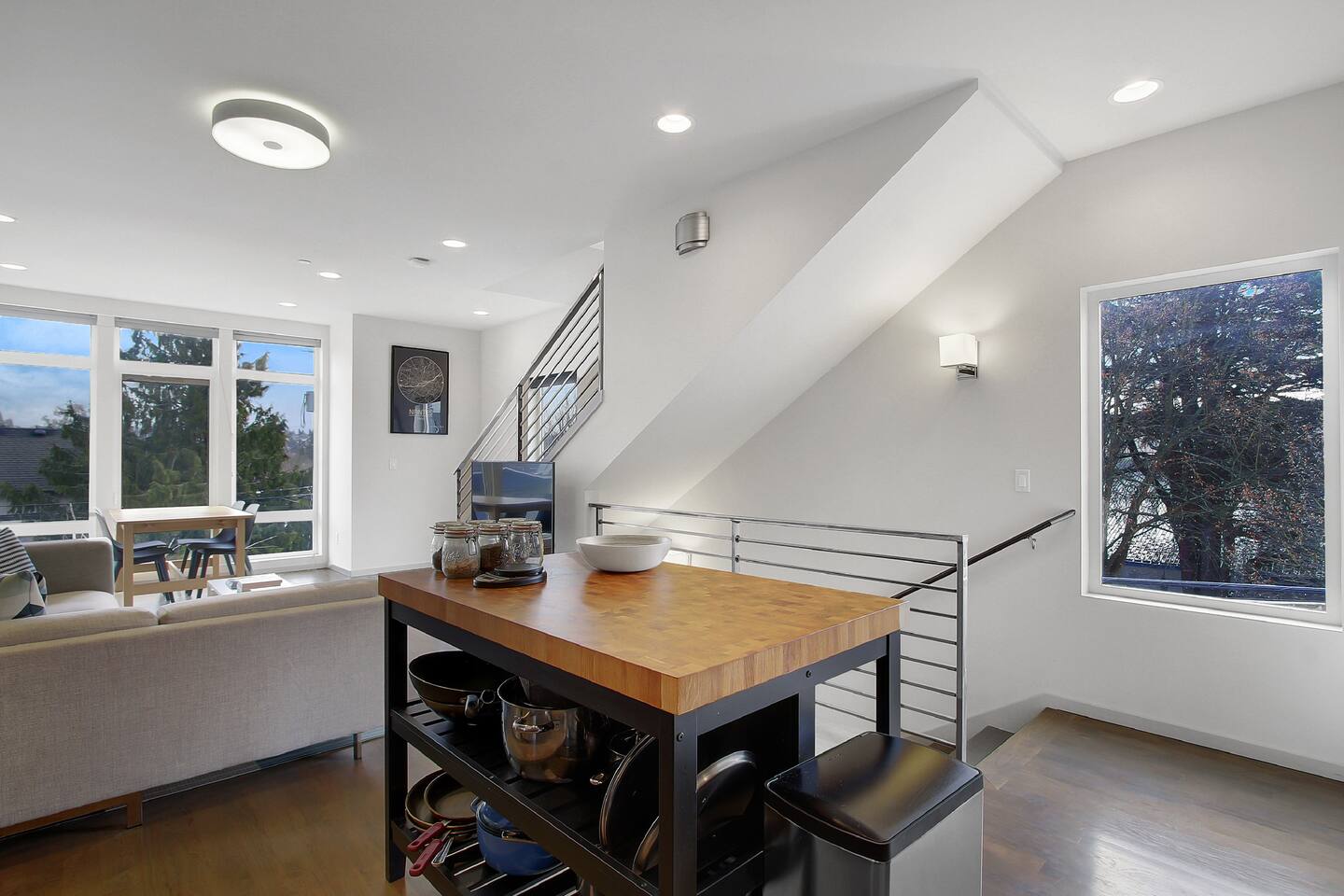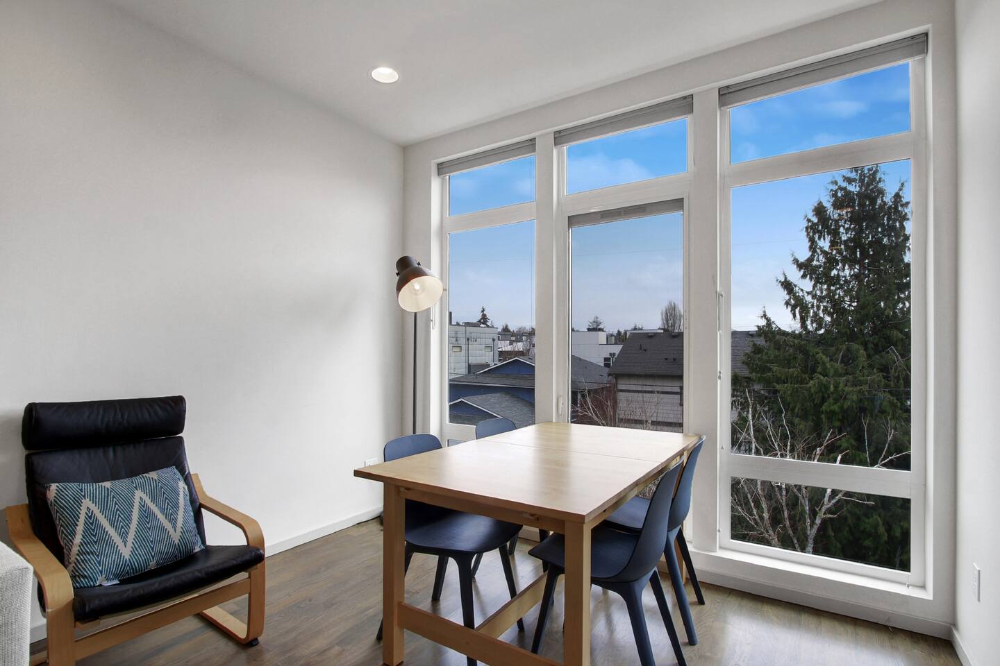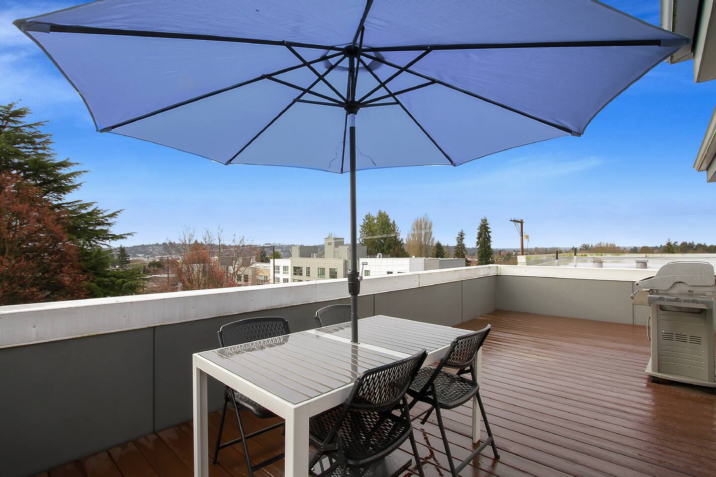 Experience the best of Ballard at our stylish end-unit townhome! Perfectly situated in a prime location, you'll enjoy stunning views, top-rated restaurants, cozy cafes, and vibrant nightlife just steps away. Walk to Rosellini’s Bakery, The Fat Hen, and Delancey, or explore nearby parks and markets. With easy access to public transit and included off-street parking, getting around the city is a breeze. Relax in comfort and convenience—your perfect Seattle getaway starts here! Step inside this thoughtfully designed space with 2 bedrooms, 2.5 bathrooms, and accommodations for up to 4 guests across a spacious 1500 square feet. Delight in culinary pursuits in the well-stocked kitchen, complete with high-end appliances and essentials for a delightful meal. Experience comfort and privacy in two bedrooms, both with queen sized beds and its own private bathroom. Drift into dreamland on premium mattresses adorned with cozy linens and duvets. Modern conveniences abound, from the in-unit washer and dryer to high-speed internet. However, the true highlight awaits on the rooftop patio, where you can relish al fresco moments on comfortable outdoor furniture while taking in panoramic city and nature views. **Floor Plan** • Ground Level: Entrance/shoe area with catch-all for belongings like keys. • Second Level: Bedroom featuring a queen bed, desk, closet, and floor mirror and heated floors. Adjacent bathroom. • Third Level: Chef's kitchen stocked with appliances, spices, and cookware. Open layout living room with Smart TV and dining table for entertaining. Half bathroom. • Fourth Level: Primary bedroom with queen-sized bed and private en suite bathroom with a shower. • Top Floor: Rooftop patio adorned with an outdoor bistro table and seating for a delightful experience. **Home Highlights** • Thoughtfully designed layout with separate bed and bath levels—ideal for group travel • Mini-split air conditioning to beat the summer heat • Abundant natural light through expansive windows • Fully equipped kitchen with high-end appliances, cookware, silverware, spices, and coffee & tea • Luxurious bed, mattress, pillows, and linens for a restful night's sleep • Smart TV and high-speed internet for seamless streaming or remote work • Convenient onsite washer and dryer for your laundry needs • Rooftop patio furnished with comfortable outdoor seating with unmatched city views