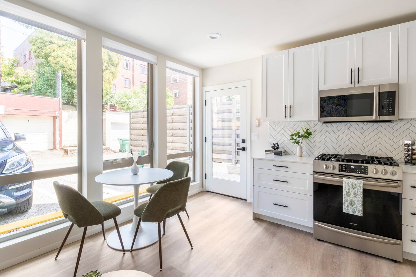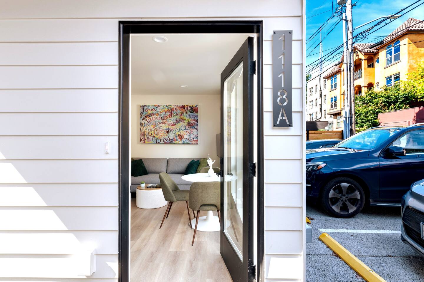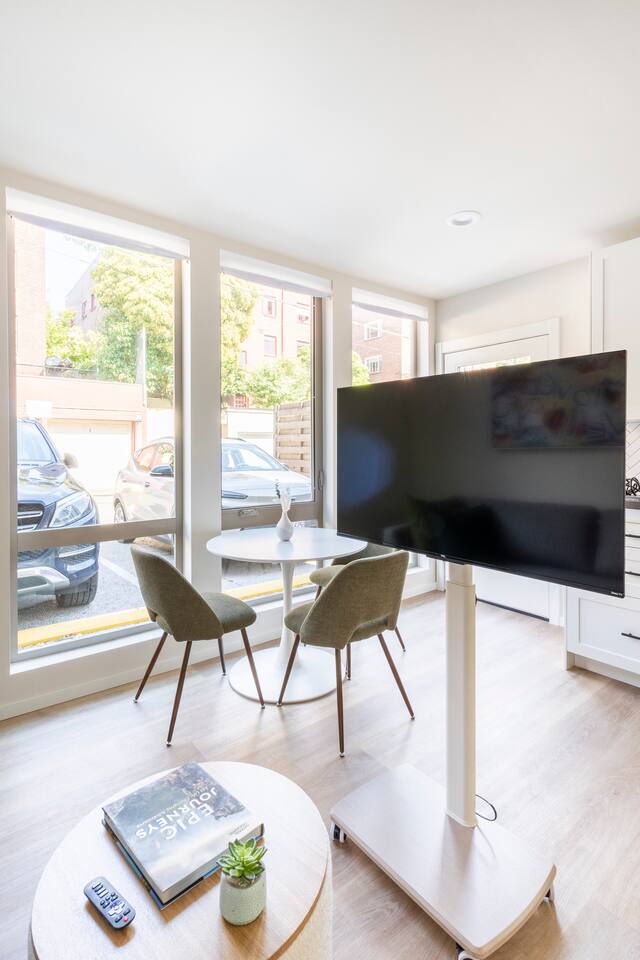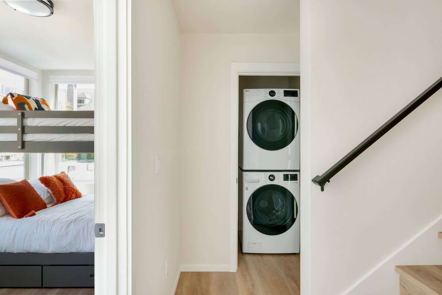 Location: • Walk Score of 95, close to restaurants, coffee shops, nightlight, and grocery stores. • 4 mins walk to multiple bus-stops with service to attractions (Downtown, Pike Place Market, Space Needle, Museum of Pop Culture, etc.) • 7 mins walk to Trader Joe's Parking: Dedicated Private Off-Street Parking for one mid-sized vehicle. If you have a larger vehicle you will need to use street parking using the City of Seattle rules. Space: • Fully equipped kitchen • Washer + Dryer in unit • A/C & Heat • Furnished Private Rooftop Patio • Workspace with desk and chair • TCL 4K Smart TV in the living room (Netflix, Hulu, Disney+, etc.) This well-equipped townhouse offers two bedrooms, each with its own private bathroom. 1st Floor: kitchen, living room, AC 2nd Floor: bedroom, full bathroom, washer/dryer 3rd Floor: master bedroom, bathroom, AC 4th Floor: furnished rooftop deck