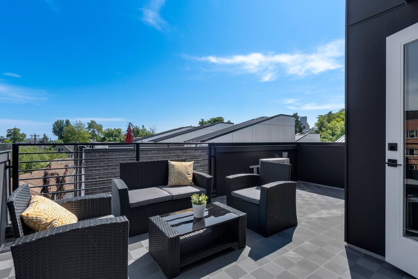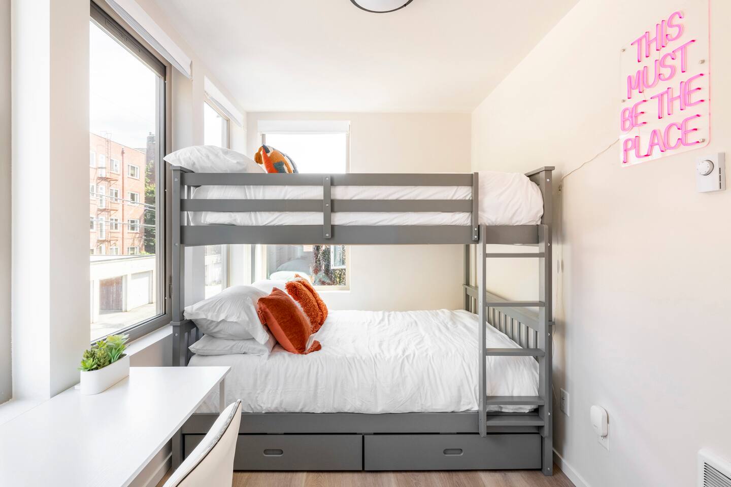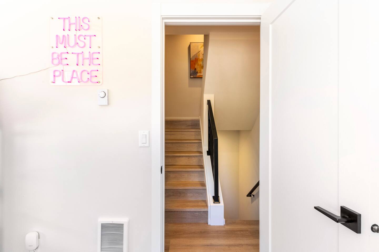 Location: • Walk Score of 95, close to restaurants, coffee shops, nightlight, and grocery stores. • 4 mins walk to multiple bus-stops with service to attractions (Downtown, Pike Place Market, Space Needle, Museum of Pop Culture, etc.) • 7 mins walk to Trader Joe's Parking: Dedicated Private Off-Street Parking for one mid-sized vehicle. If you have a larger vehicle you will need to use street parking using the City of Seattle rules. Space: • Fully equipped kitchen • Washer + Dryer in unit • A/C & Heat • Furnished Private Rooftop Patio • Workspace with desk and chair • TCL 4K Smart TV in the living room (Netflix, Hulu, Disney+, etc.) This well-equipped townhouse offers two bedrooms, each with its own private bathroom. 1st Floor: kitchen, living room, AC 2nd Floor: bedroom, full bathroom, washer/dryer 3rd Floor: master bedroom, bathroom, AC 4th Floor: furnished rooftop deck