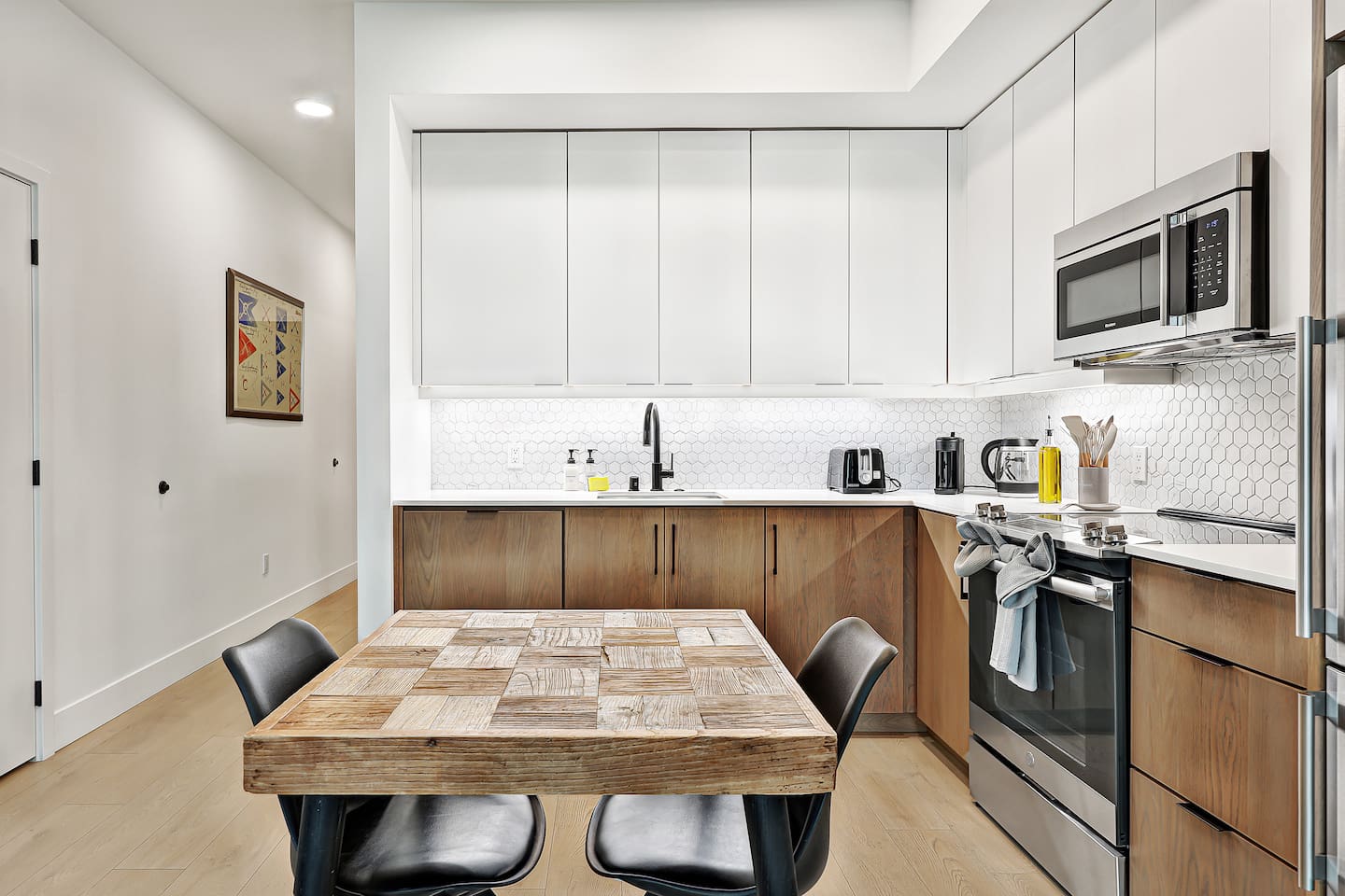 🔒 Security Deposit To help protect our space and ensure a great stay for everyone, a refundable security deposit is required for all reservations. This deposit is collected automatically 2 days before check-in through Hospitable’s secure system and will be held until after check-out (released 2 days later if there are no issues). Welcome to your eco-luxury retreat in the heart of Capitol Hill! Our spacious 1 bedroom x 1 bathroom apartment at Solis blends modern design with comfort, featuring floor-to-ceiling windows, stylish furnishings, Smart TV, and air conditioning. The space includes: - One bedroom with plush queen-size bed and premium mattress - One full bathroom with modern fixtures and spa-like touches - Open-concept living room with Smart TV and comfortable seating - Fully equipped kitchen with modern appliances and essentials - High-speed WiFi throughout the apartment Building amenities: - Rooftop deck with BBQ grills, outdoor dining, lounge seating, pergola & stunning city views - Eco-friendly, sustainable building designed to Passive House standards Location highlights: Located in the lively Pike/Pine corridor of Capitol Hill, you’ll be just steps away from: - Trendy cafés, bars, and restaurants, same block as The Cuff Complex - Boutique shops and local markets - The Capitol Hill light rail station for easy access downtown & UW - Nearby parks and green spaces for a breath of fresh air Perfect for both work and play, this is your stylish home base to explore Seattle!