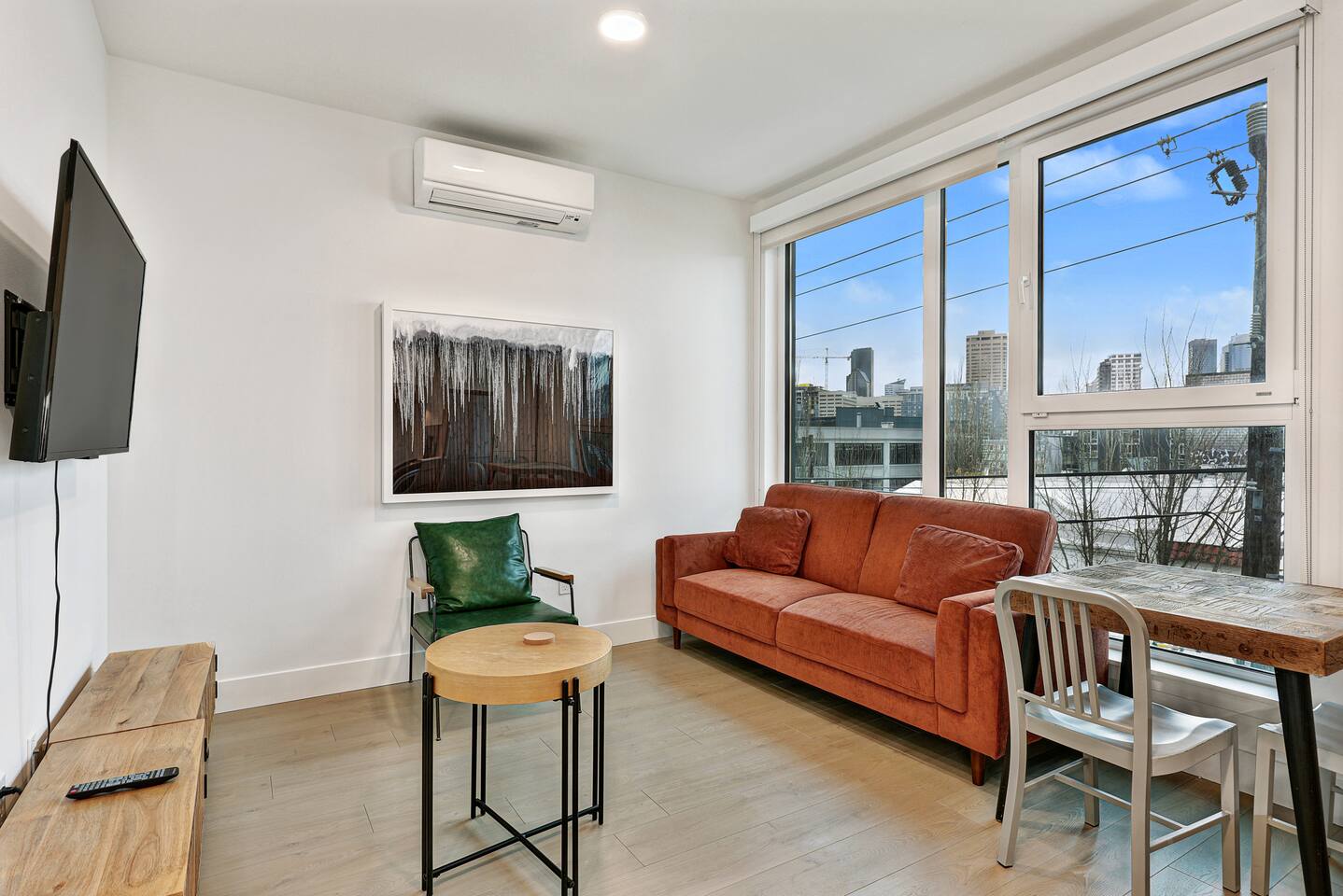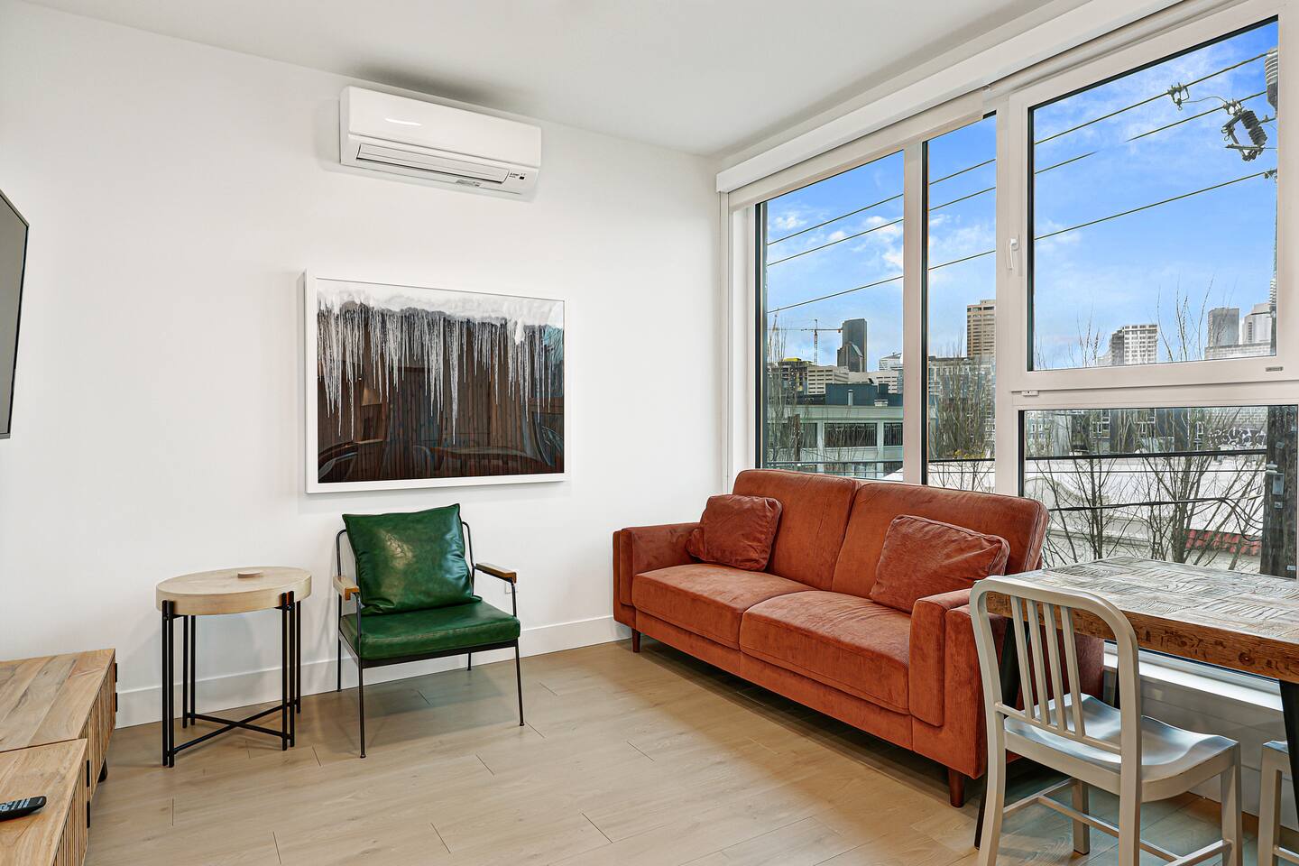 🔒 Security Deposit To help protect our space and ensure a great stay for everyone, a refundable security deposit is required for all reservations. This deposit is collected automatically 2 days before check-in through Hospitable’s secure system and will be held until after check-out (released 2 days later if there are no issues). Welcome to your eco-luxury retreat in the heart of Capitol Hill! Our spacious 1 bedroom x 1 bathroom apartment at Solis blends modern design with comfort, featuring floor-to-ceiling windows, stylish furnishings, Smart TV, and air conditioning. The space includes: - One bedroom with plush queen-size bed and premium mattress - One full bathroom with modern fixtures and spa-like touches - Open-concept living room with Smart TV and comfortable seating - Fully equipped kitchen with modern appliances and essentials - High-speed WiFi throughout the apartment Building amenities: - Rooftop deck with BBQ grills, outdoor dining, lounge seating, pergola & stunning city views - Eco-friendly, sustainable building designed to Passive House standards Location highlights: Located in the lively Pike/Pine corridor of Capitol Hill, you’ll be just steps away from: - Trendy cafés, bars, and restaurants, same block as The Cuff Complex - Boutique shops and local markets - The Capitol Hill light rail station for easy access downtown & UW - Nearby parks and green spaces for a breath of fresh air Perfect for both work and play, this is your stylish home base to explore Seattle!