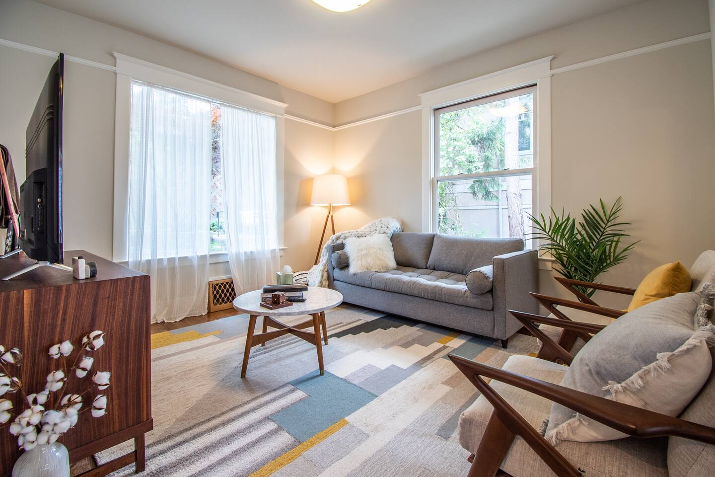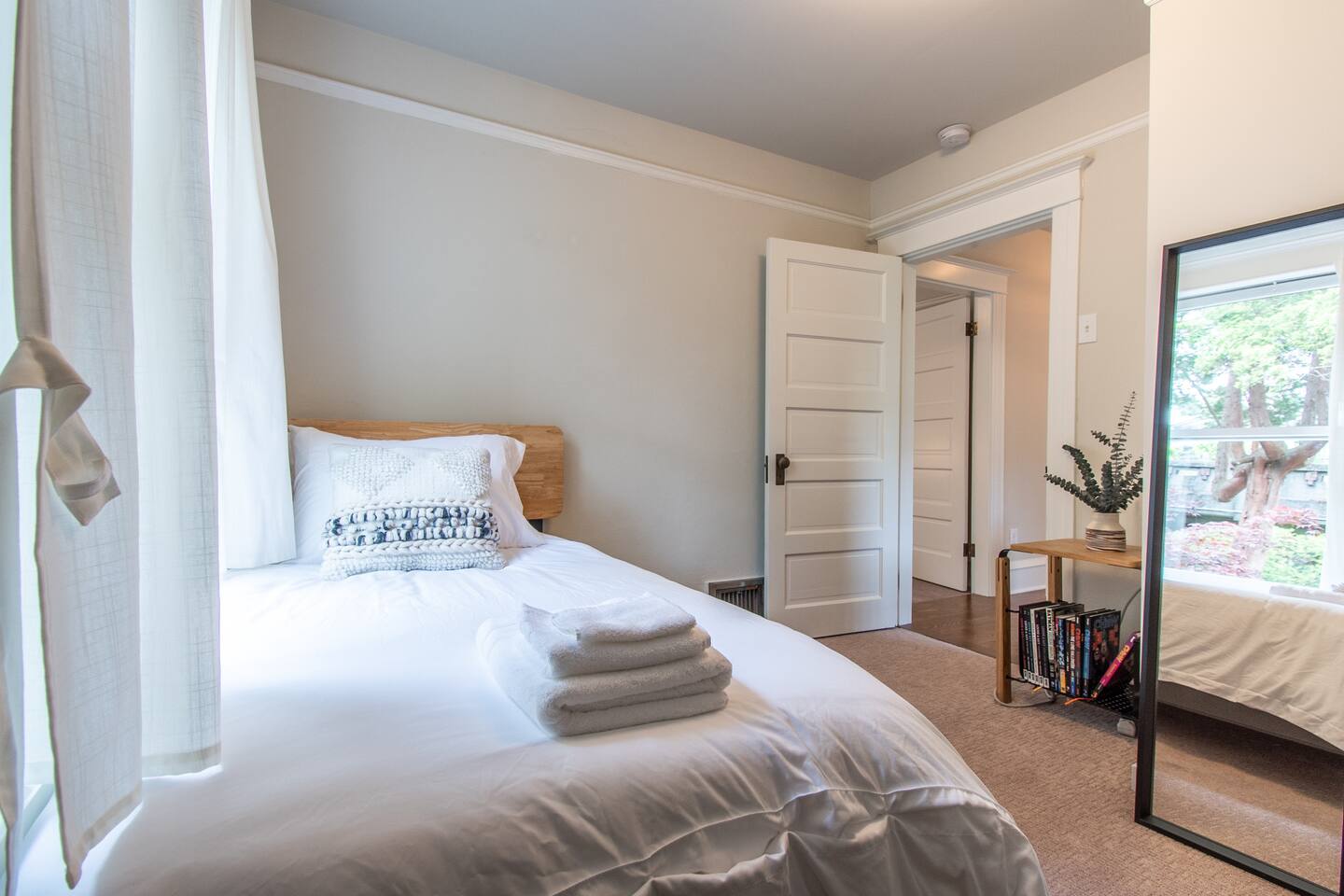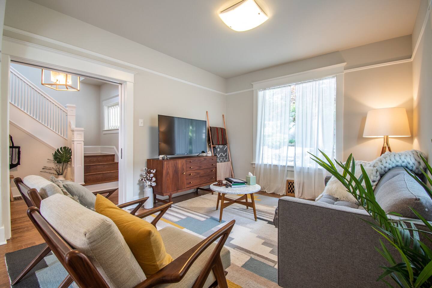 Experience the charm of this 2018 revival of a 1907 Dutch Colonial in Queen Anne, perfect for families with kids and larger groups seeking privacy. Nestled on a quiet street with Puget Sound views, it boasts two new kitchens, cozy nooks, and thoughtful touches for any stay. Enjoy the formal dining room, pocket doors, and stone-counter kitchens with stainless appliances. The lower-level suite, with its own entrance, offers added flexibility. Minutes from the Space Needle and cruise terminal!