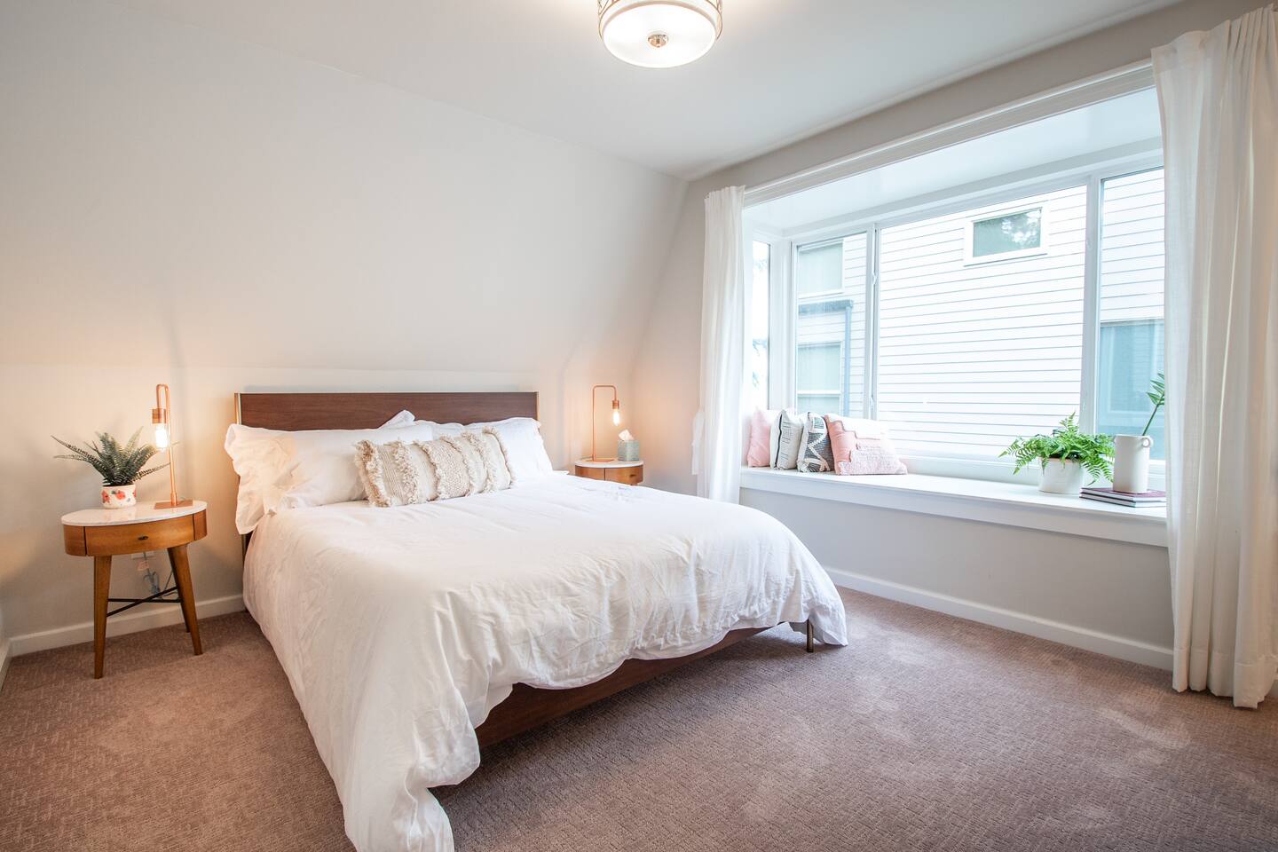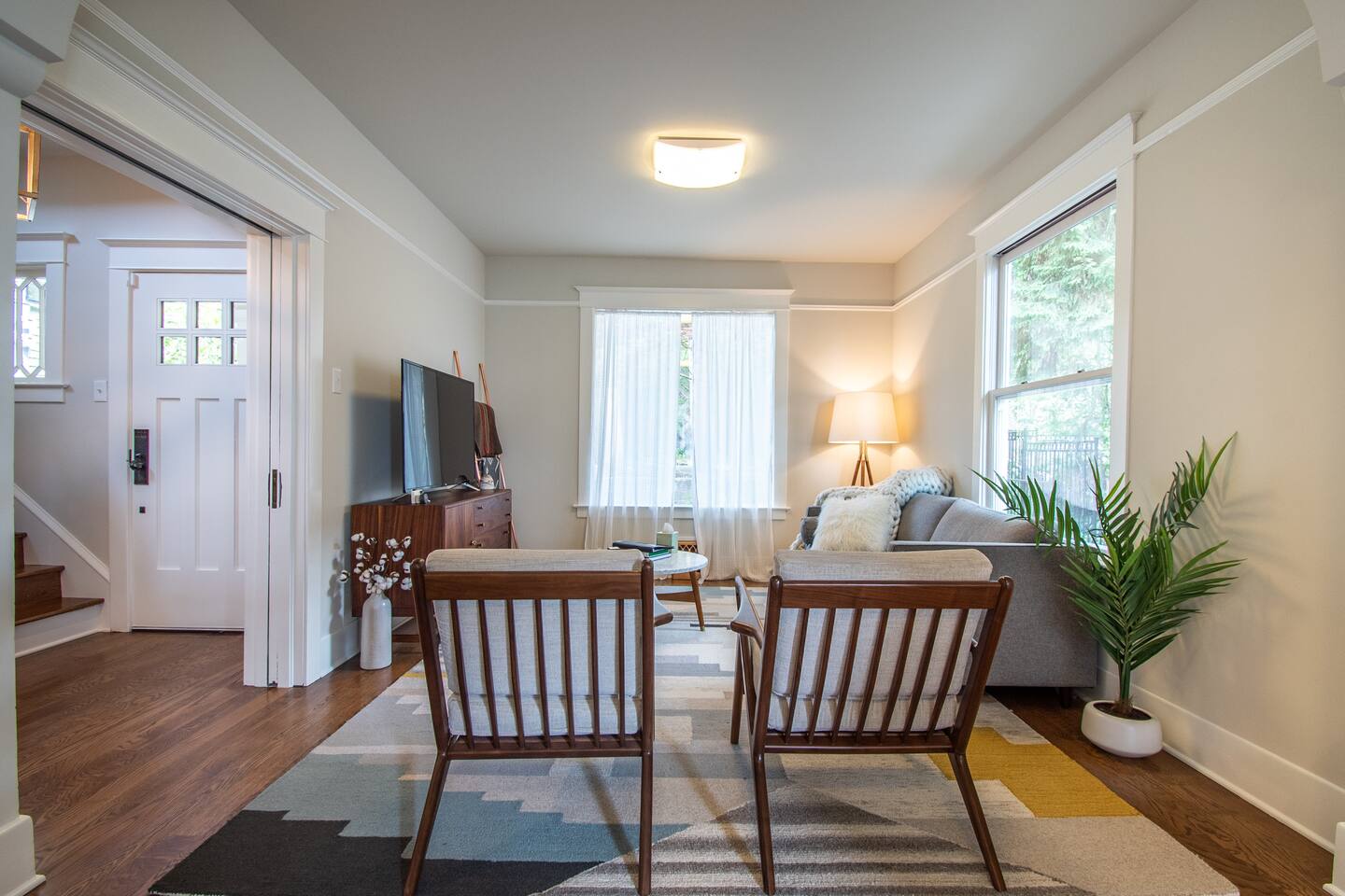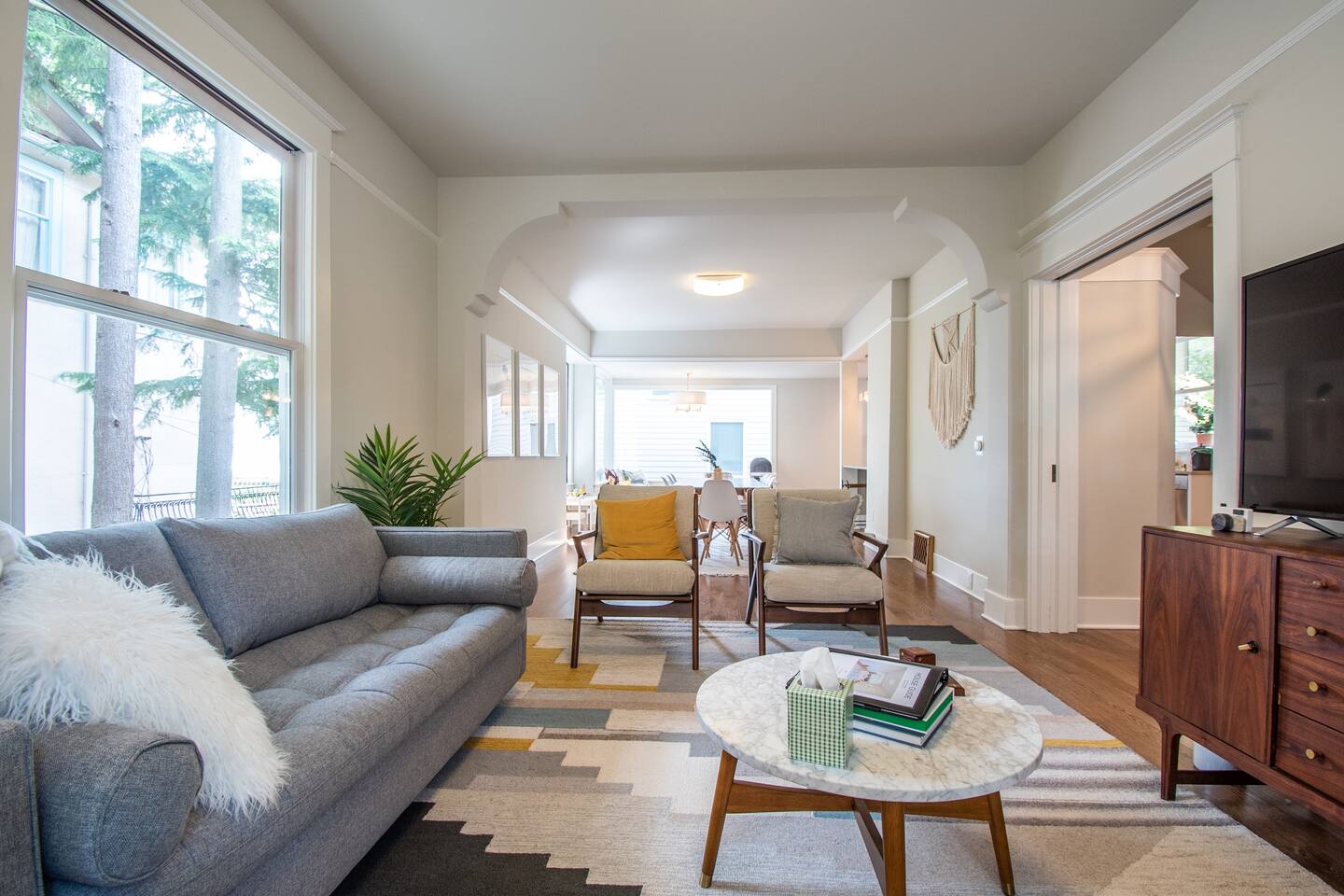 Experience the charm of this 2018 revival of a 1907 Dutch Colonial in Queen Anne, perfect for families with kids and larger groups seeking privacy. Nestled on a quiet street with Puget Sound views, it boasts two new kitchens, cozy nooks, and thoughtful touches for any stay. Enjoy the formal dining room, pocket doors, and stone-counter kitchens with stainless appliances. The lower-level suite, with its own entrance, offers added flexibility. Minutes from the Space Needle and cruise terminal!