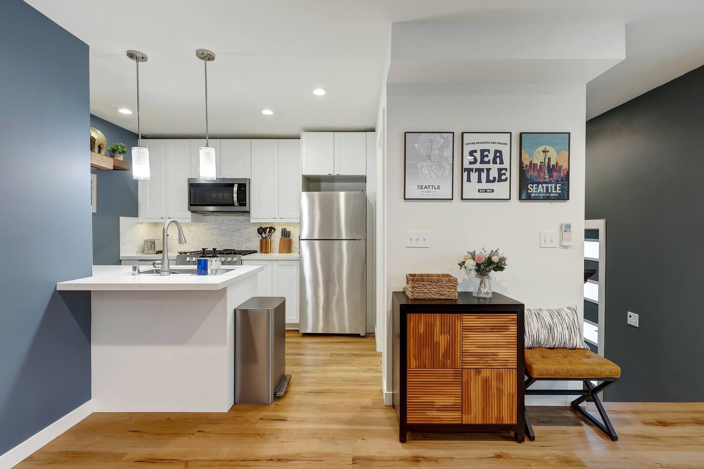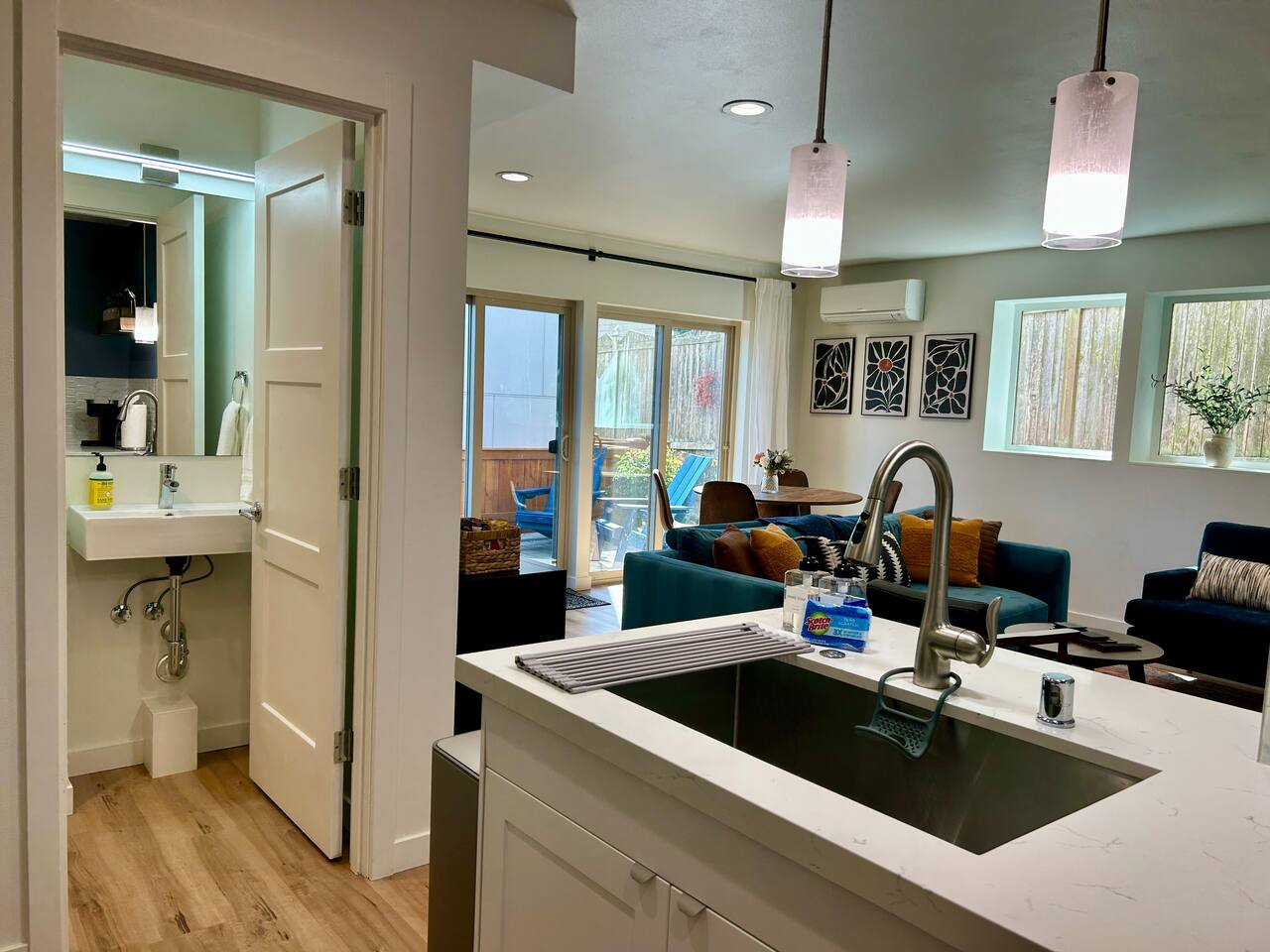Welcome to your West Seattle getaway! This bright and stylish home off California Ave SW offers 2 bedrooms, 2.5 baths, a fully equipped kitchen, cozy living room, and private patio. Just steps from the Water Taxi to Downtown Seattle and Alki Beach Pier, and minutes to Junction and Alki Beach. Enjoy morning coffee + tea on the private patio, and fast wifi. Ideal for families or small groups looking for comfort and convenience in a vibrant neighborhood. Make yourself at home!
