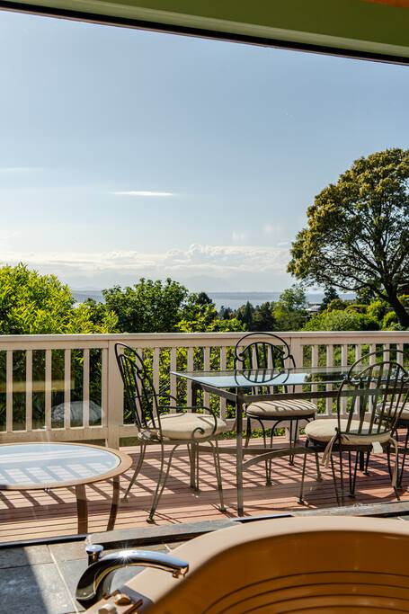 Private air conditioned getaway retreat with breathtaking views of Puget Sound & islands, Fauntleroy ferry, and Olympic Mountains on a quiet dead end street.